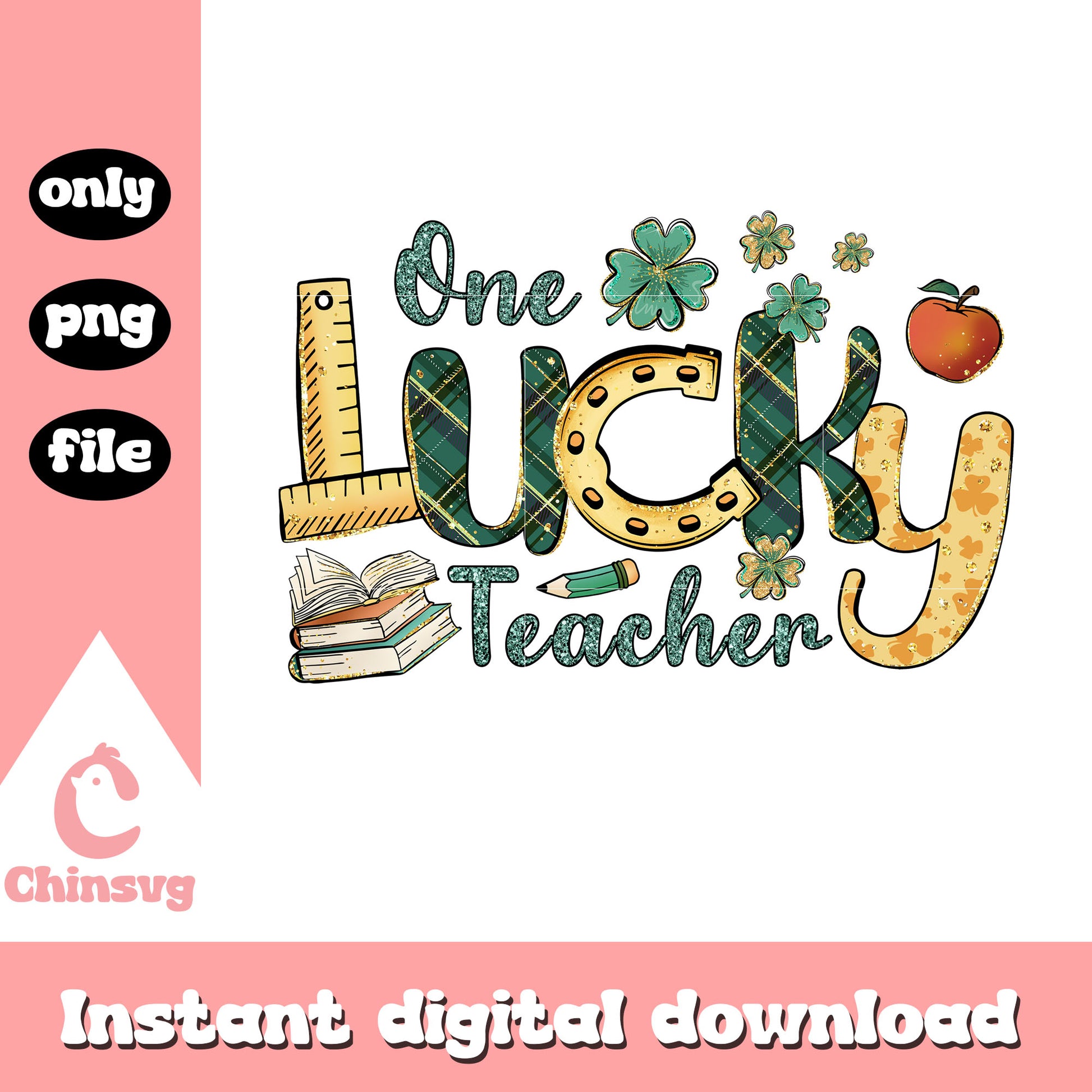 One lucky teacher design png is a product of our St patrick's day collection. Packed with festive designs, this collection features lucky clovers, leprechauns, rainbows, hats, mugs of beer, and all things green and gold. Perfect for crafting custom decorations, apparel, and gifts, these high-quality files are ideal for adding a touch of Irish cheer to your creative projects.
