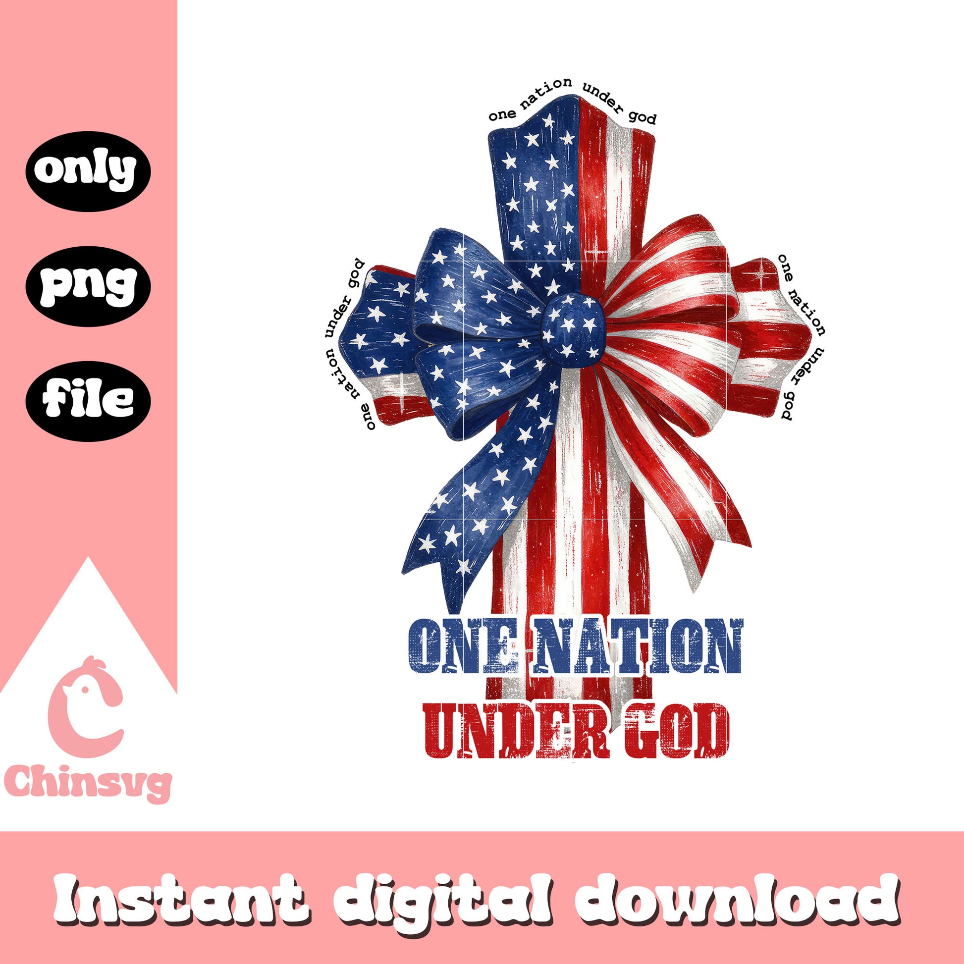 One nation under god america cross design png is a product of our 4th of July collection. Get ready to celebrate America’s Independence Day in style with our 4th of July SVG Collection! Packed with bold red, white, and blue designs, this collection features patriotic graphics, fun quotes, fireworks, flags, and more. Perfect for DIY apparel, party decorations, and personalized gifts that light up the holiday spirit!