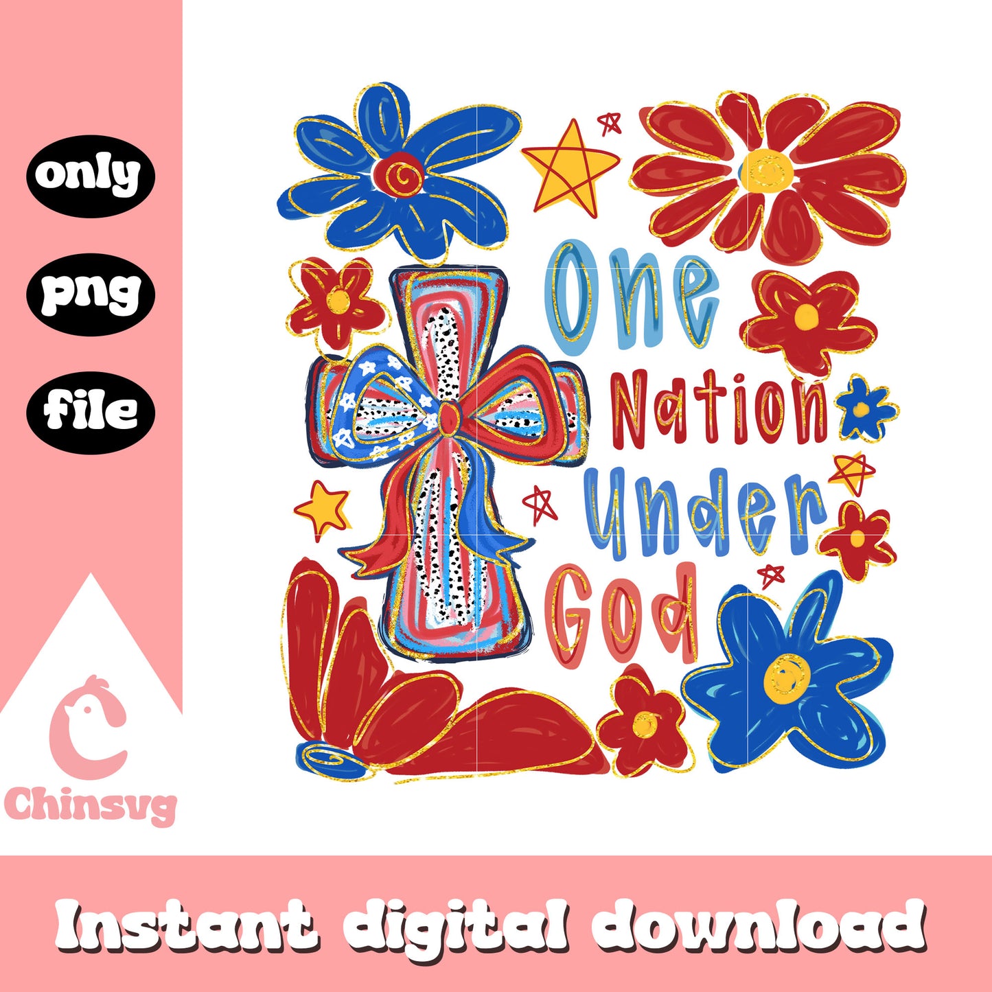 One nation under god cross flowers design png is a product of our 4th of July collection. Get ready to celebrate America’s Independence Day in style with our 4th of July SVG Collection! Packed with bold red, white, and blue designs, this collection features patriotic graphics, fun quotes, fireworks, flags, and more. Perfect for DIY apparel, party decorations, and personalized gifts that light up the holiday spirit!