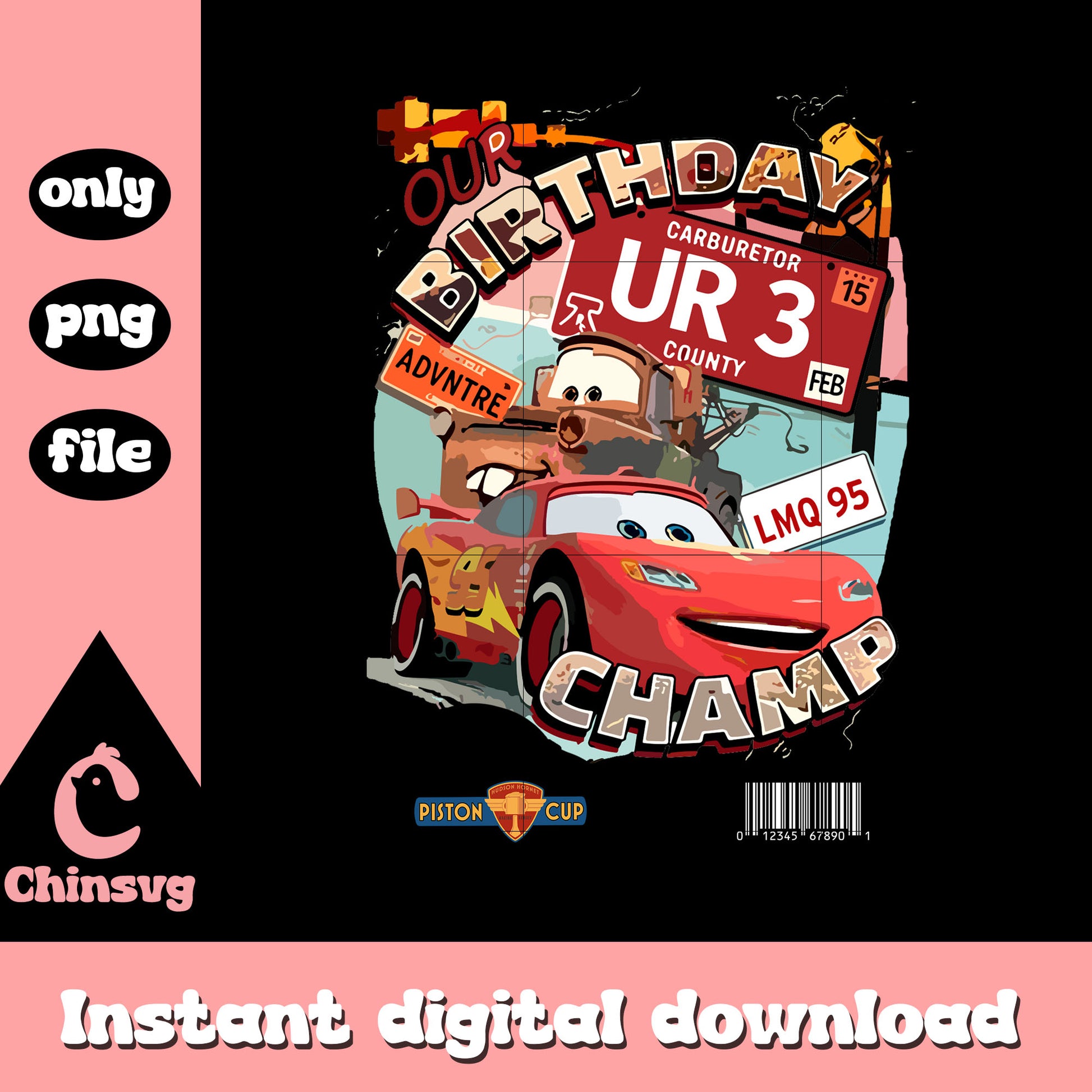 Our birthday champ cars disney characters png is a product of our Cartoon collection. Featuring iconic characters, playful designs, and vibrant elements, this collection is perfect for cartoon lovers of all ages. Whether you're crafting for kids, designing custom apparel, or creating unique home decor, these high-quality SVG files will add a touch of magic to your projects!
