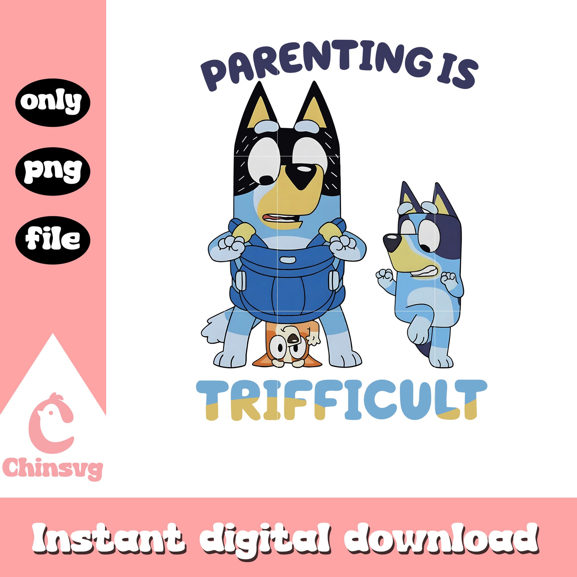 Parenting is trifficult design png is a product of our Bluey collection. Packed with vibrant, fun, and creative illustrations, this collection features a wide range of adorable characters, colorful icons, and lively scenes that will brighten up any project. Whether you’re designing for kids' parties, custom apparel, or digital art, these high-quality files are perfect for unleashing your creativity.