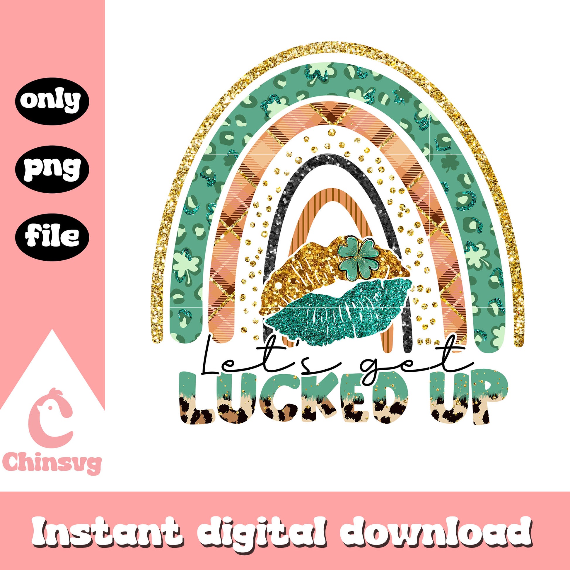 Patrick rainbow let's get lucked up png is a product of our St patrick's day collection. Packed with festive designs, this collection features lucky clovers, leprechauns, rainbows, hats, mugs of beer, and all things green and gold. Perfect for crafting custom decorations, apparel, and gifts, these high-quality files are ideal for adding a touch of Irish cheer to your creative projects.