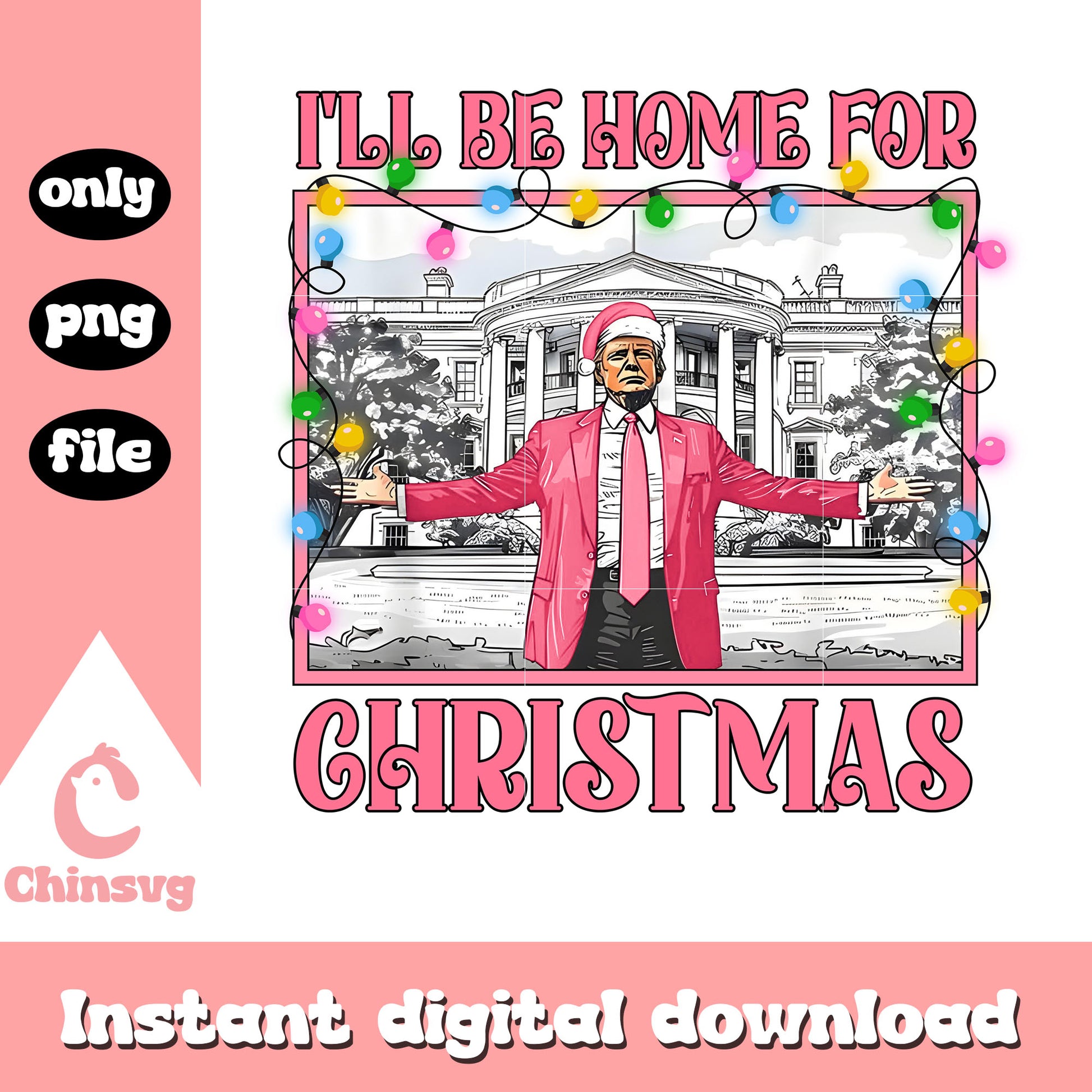 Pink i will be home for christmas lights png, trump christmas png
