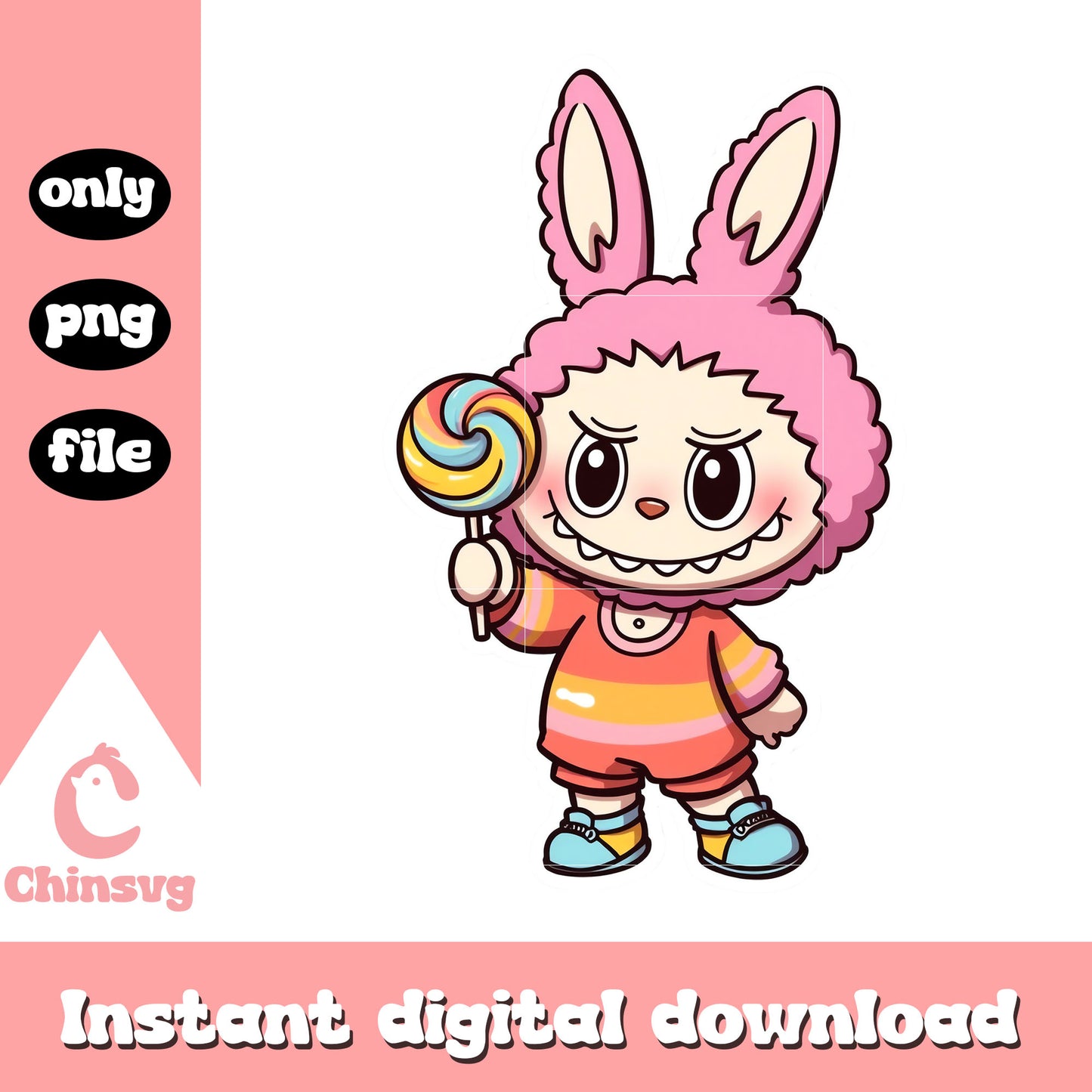 Pink labubu cute costume design png is a product of our Labubu collection. Dive into the magical world of Labubu with our whimsical Labubu SVG Collection! Inspired by the beloved mischievous character from the POP MART universe, this collection is filled with playful poses, expressive faces, and cute yet edgy vibes. Perfect for fans, collectors, and crafters looking to add a touch of artistic charm and character to their projects.