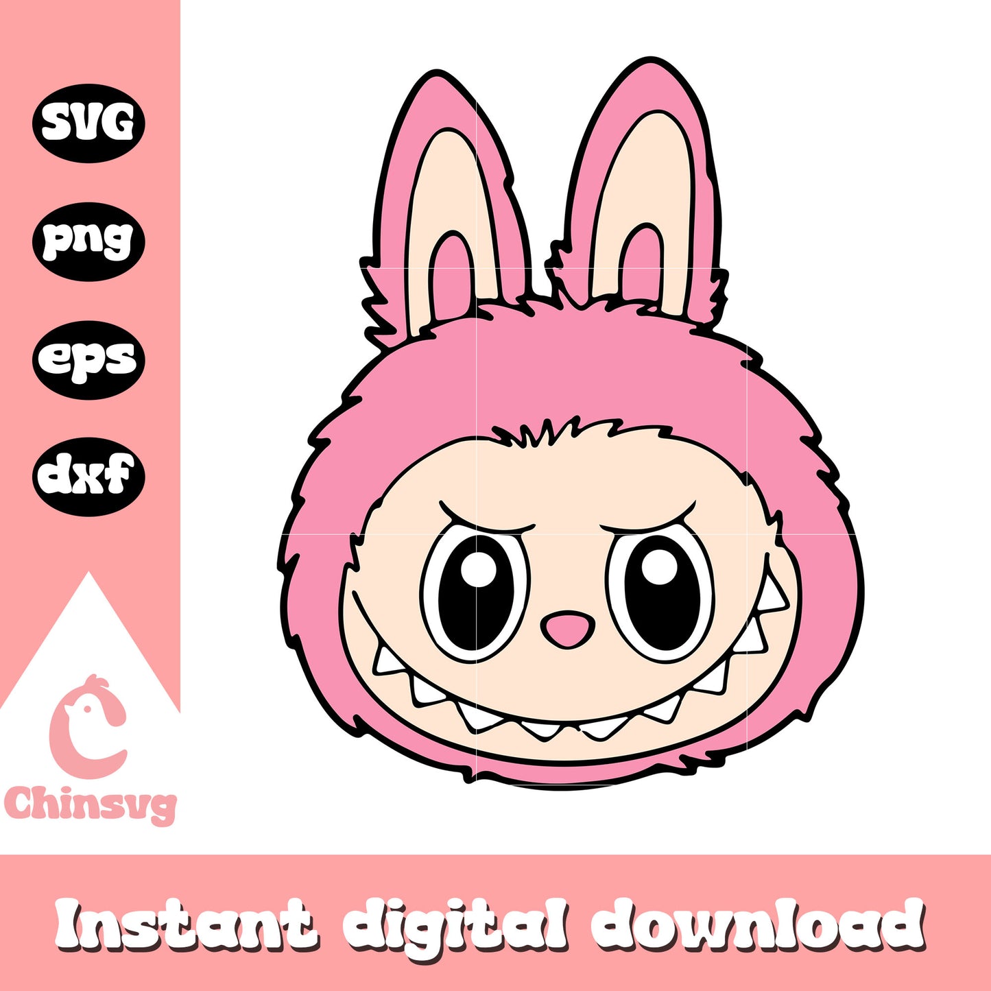 Pink labubu face cute doll drawing design svg, labubu pink svg