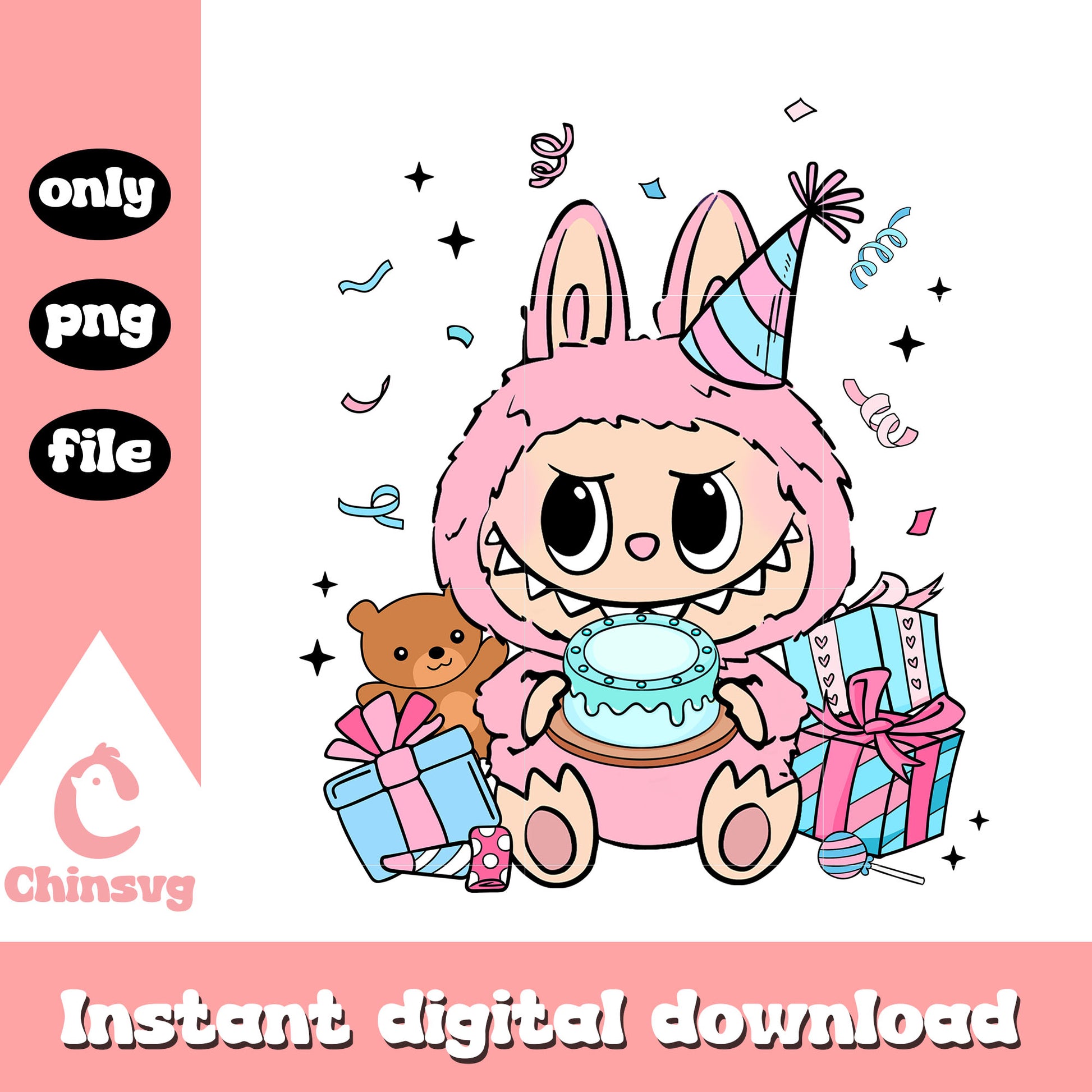 Pink labubu holding birthday cake png is a product of our Labubu collection. Dive into the magical world of Labubu with our whimsical Labubu SVG Collection! Inspired by the beloved mischievous character from the POP MART universe, this collection is filled with playful poses, expressive faces, and cute yet edgy vibes. Perfect for fans, collectors, and crafters looking to add a touch of artistic charm and character to their projects.