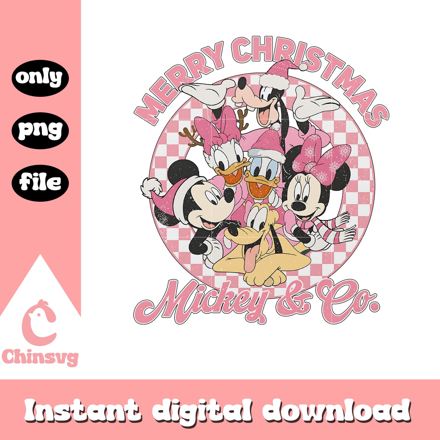 Pink merry christmas mickey and co png is a product of our christmas collection. Perfect for DIY enthusiasts, crafters, and designers, this collection offers a wide range of festive elements like Christmas trees, Santa Claus, snowflakes, ornaments, reindeer, and more. Whether you’re designing greeting cards, personalized gifts, or home decor, these high-quality designs will help you create something truly special this Christmas.