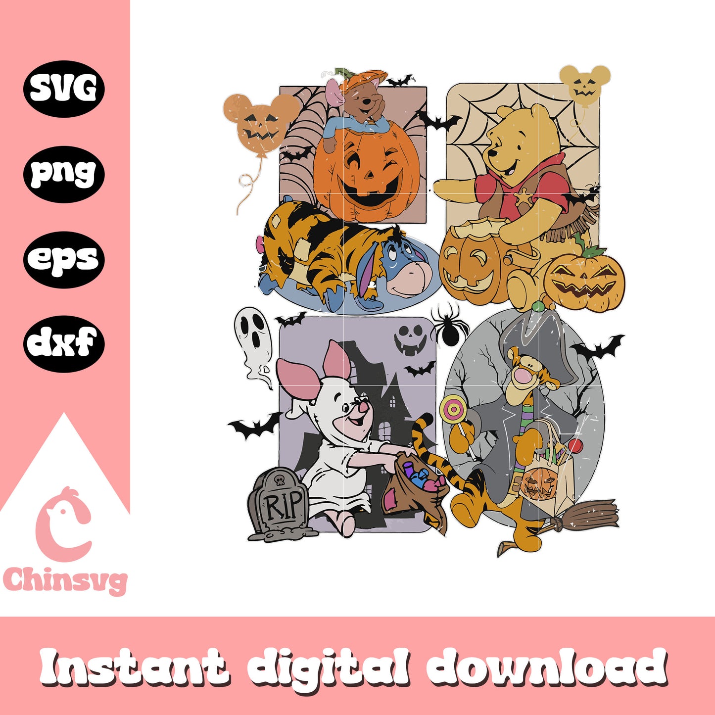 Pooh and friends on halloween svg, cartoon halloween svg, winnie the pooh svg