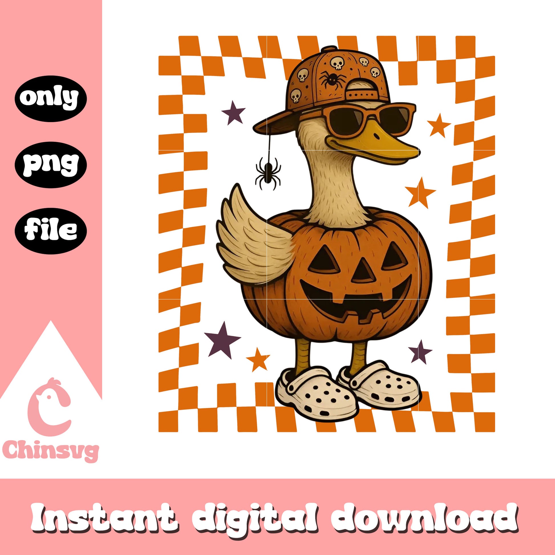 Pumpkin Dressed Goose boy Halloween Art png, goose pumpkin costume png