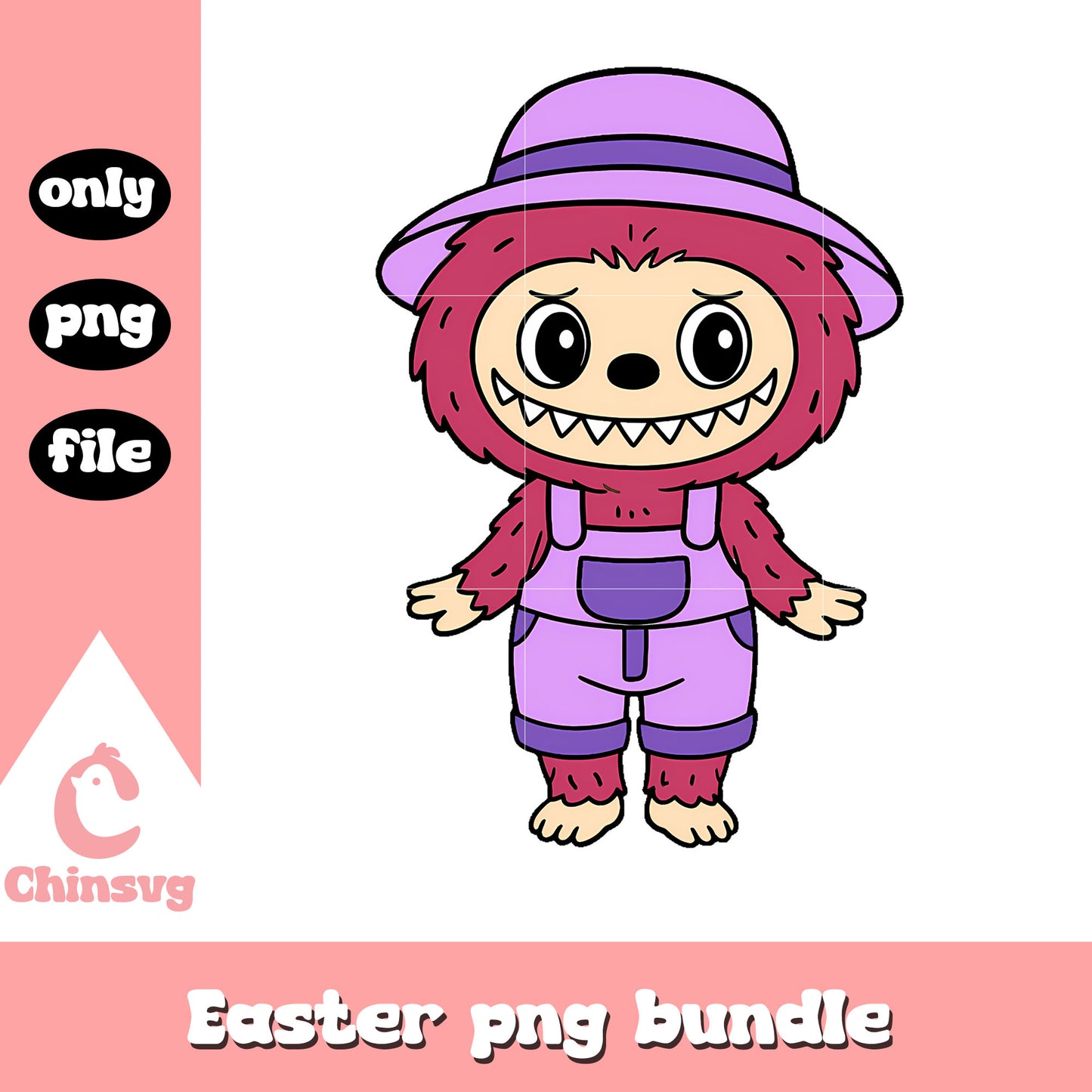 Purple overalls labubu cute doll drawing design png, labubu art png