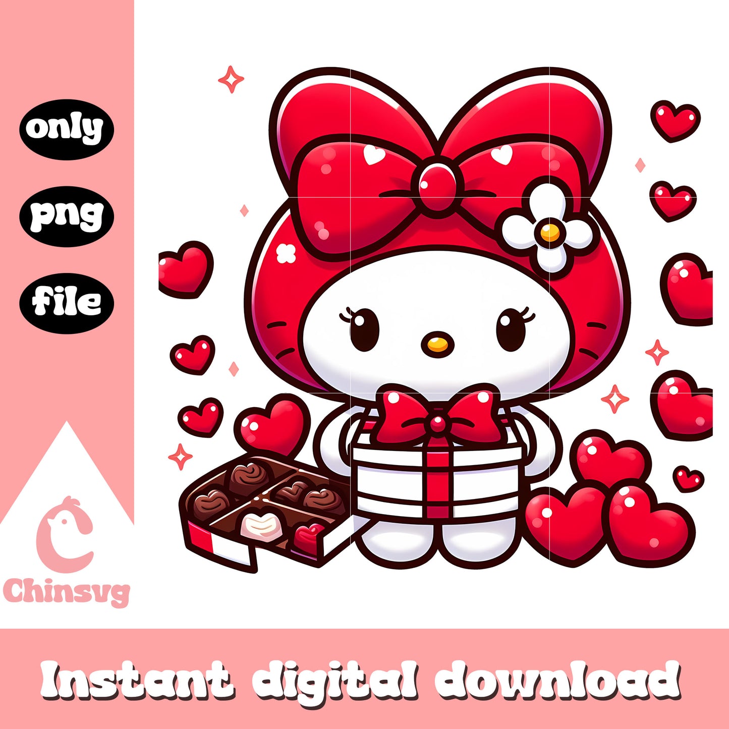 Red my melody and valentine chocolate png is a product of our hello kitty collection. Featuring the beloved character and her charming world, this collection is perfect for fans, crafters, and designers of all ages. Whether you're creating party decorations, custom gifts, or digital artwork, these high-quality designs will make every project extra cute and memorable.