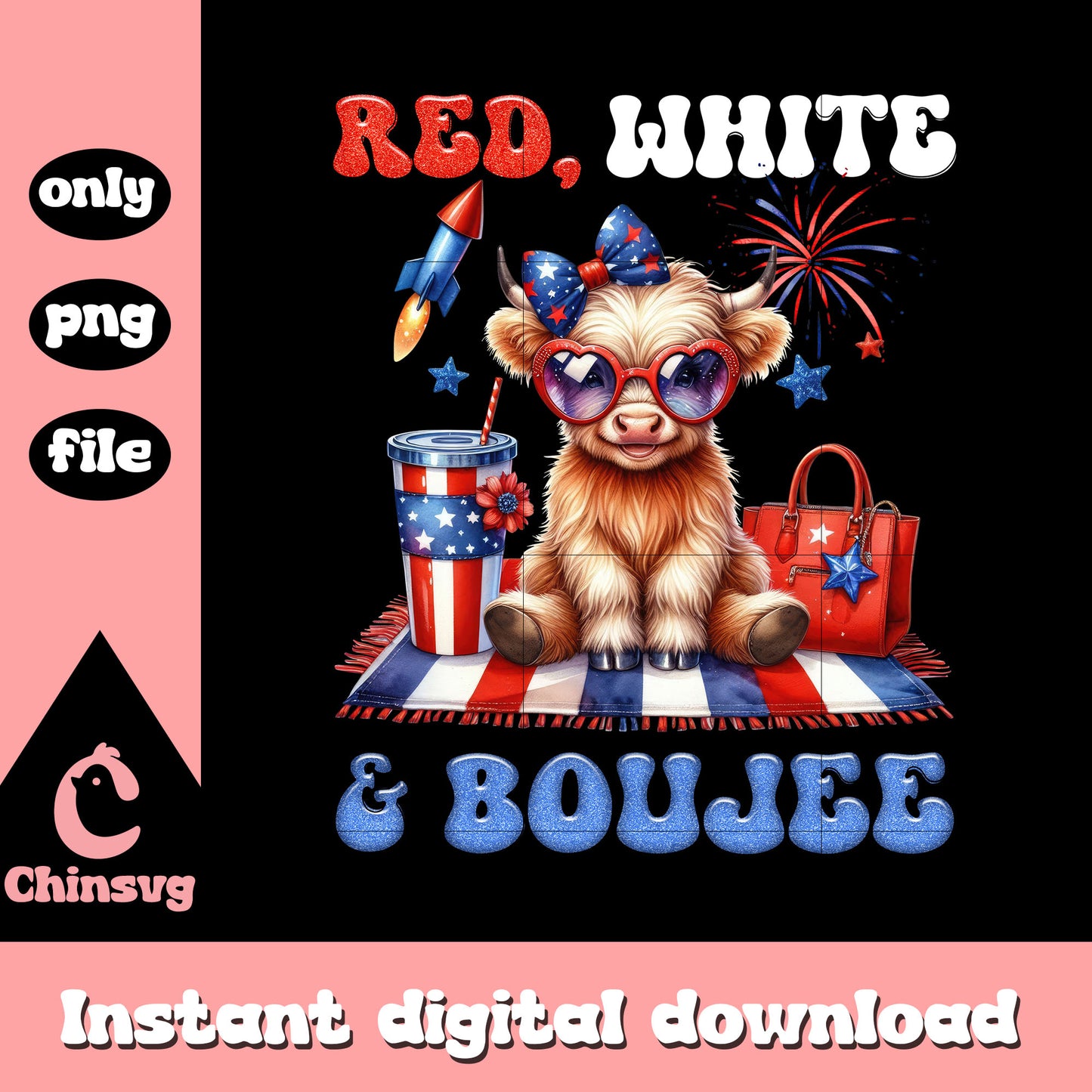 Red white and boujee cow png is a product of our 4th of July collection. Get ready to celebrate America’s Independence Day in style with our 4th of July SVG Collection! Packed with bold red, white, and blue designs, this collection features patriotic graphics, fun quotes, fireworks, flags, and more. Perfect for DIY apparel, party decorations, and personalized gifts that light up the holiday spirit!
