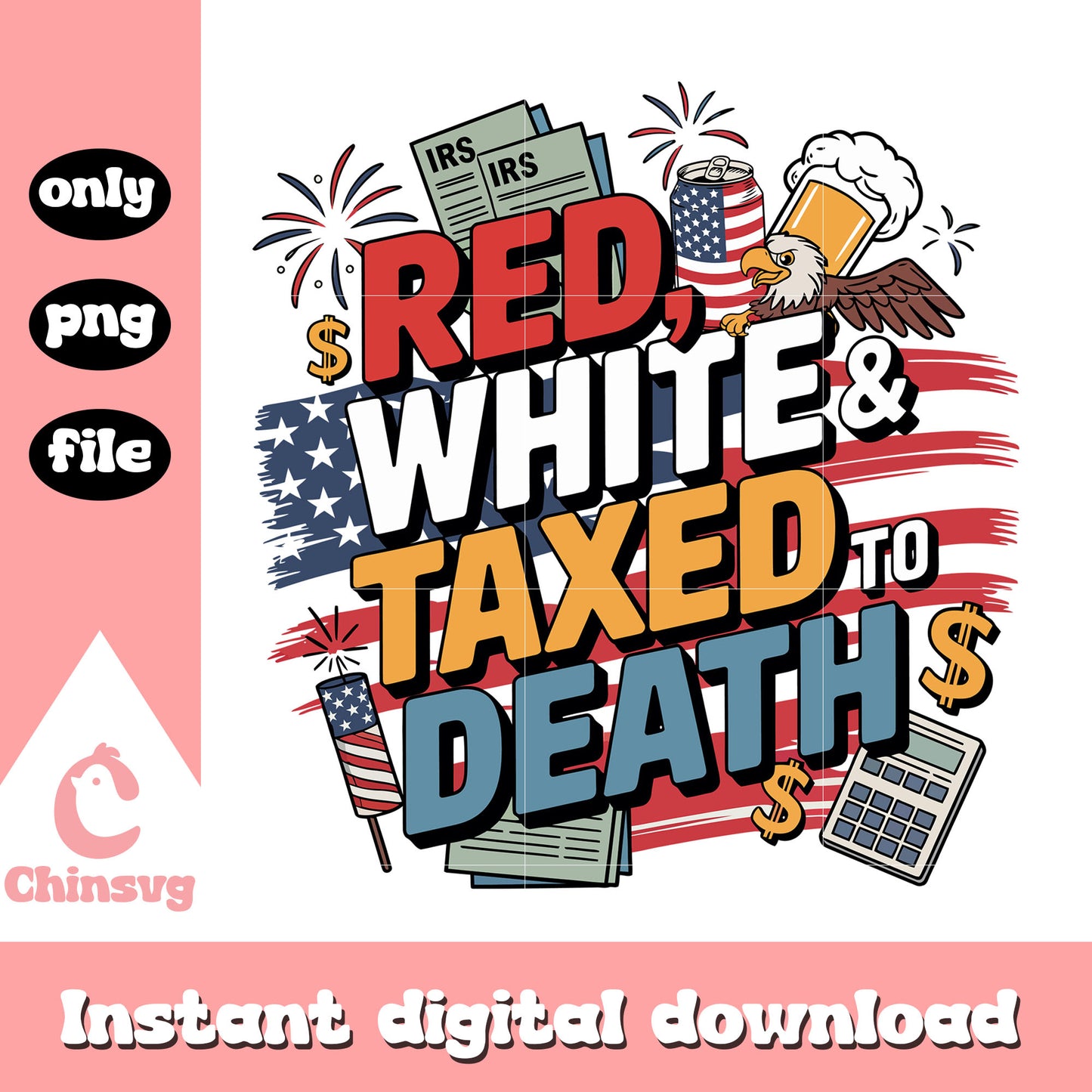 Red white and taxed to death png is a product of our 4th of July collection. Get ready to celebrate America’s Independence Day in style with our 4th of July SVG Collection! Packed with bold red, white, and blue designs, this collection features patriotic graphics, fun quotes, fireworks, flags, and more. Perfect for DIY apparel, party decorations, and personalized gifts that light up the holiday spirit!