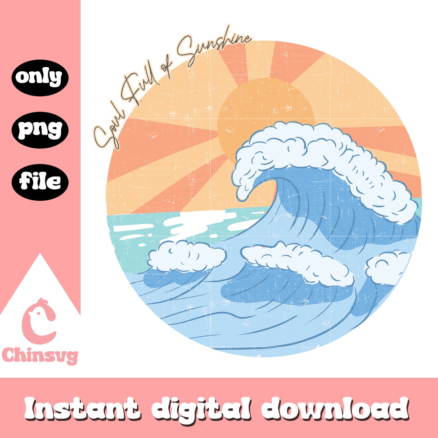 Retro soul full of sunshine png, summer vibe png, sun and wave png