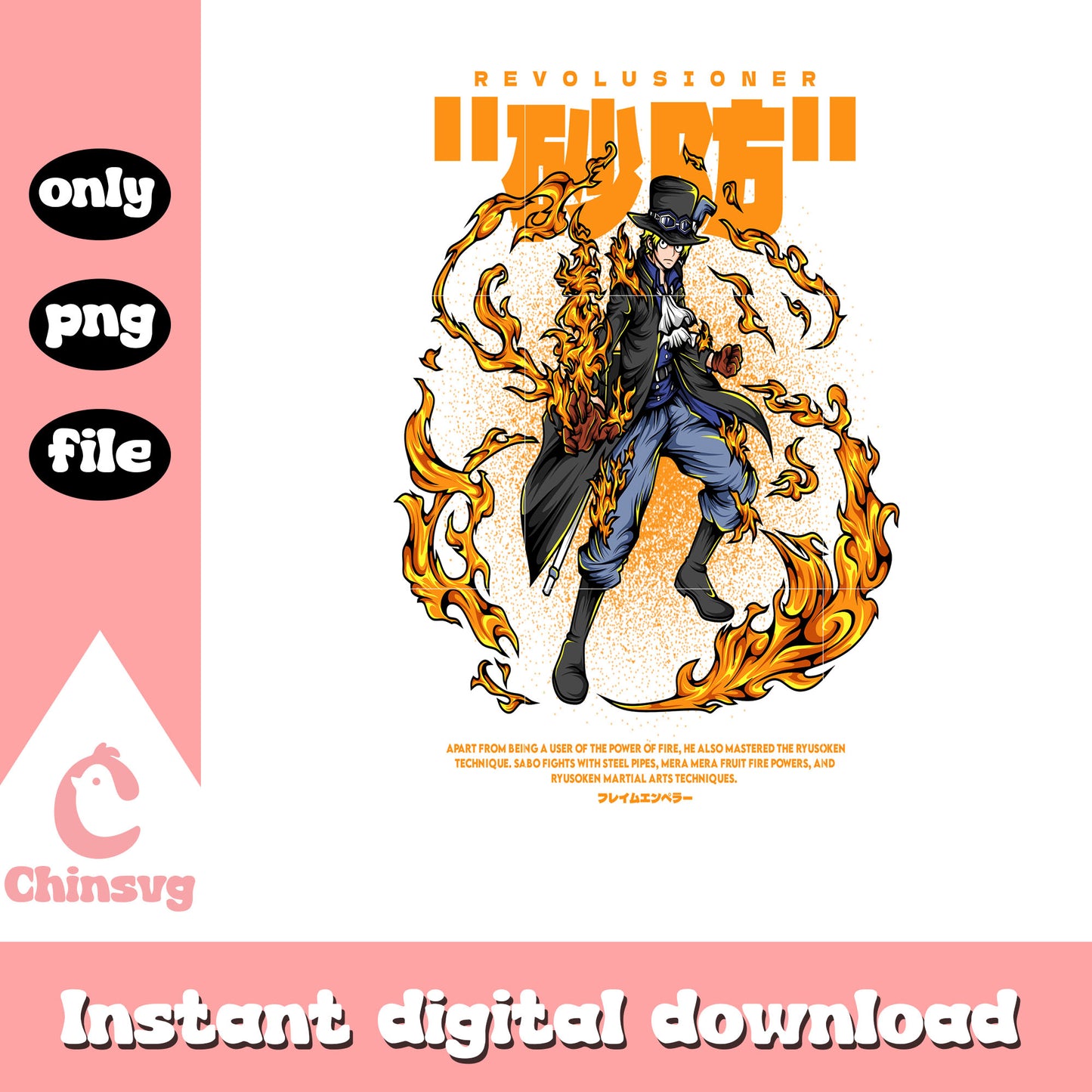 Revolusioner sabo png is a product of our one piece collection. Featuring iconic characters, pirate symbols, legendary quotes, and famous emblems, this collection is perfect for anime fans, cosplayers, and creative crafters. Whether you're designing custom apparel, home decor, or gifts for fellow One Piece lovers, these high-quality SVG designs will bring the spirit of adventure to your creations!