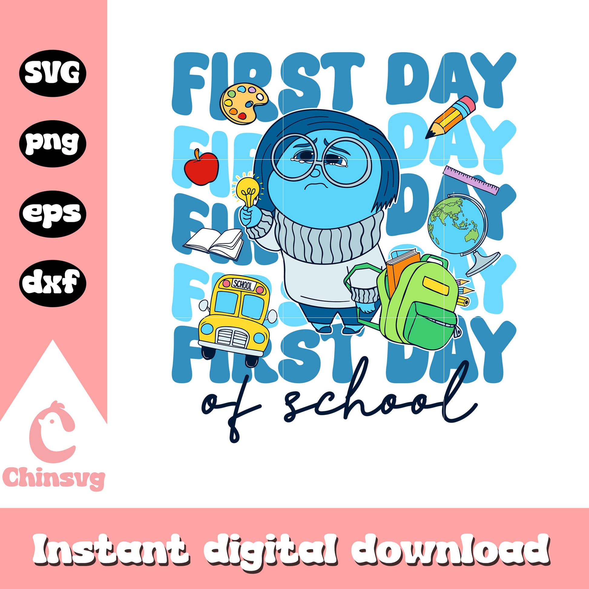 Sadness character first day of school svg is a product of our School collection. Celebrate the spirit of learning with our School SVG Collection! Perfect for teachers, students, and parents, this collection features education-themed designs, from playful quotes and school supplies to classroom graphics and seasonal school moments. Whether you're personalizing a teacher gift or decorating for back-to-school, these high-quality files bring creativity to every classroom and craft project!