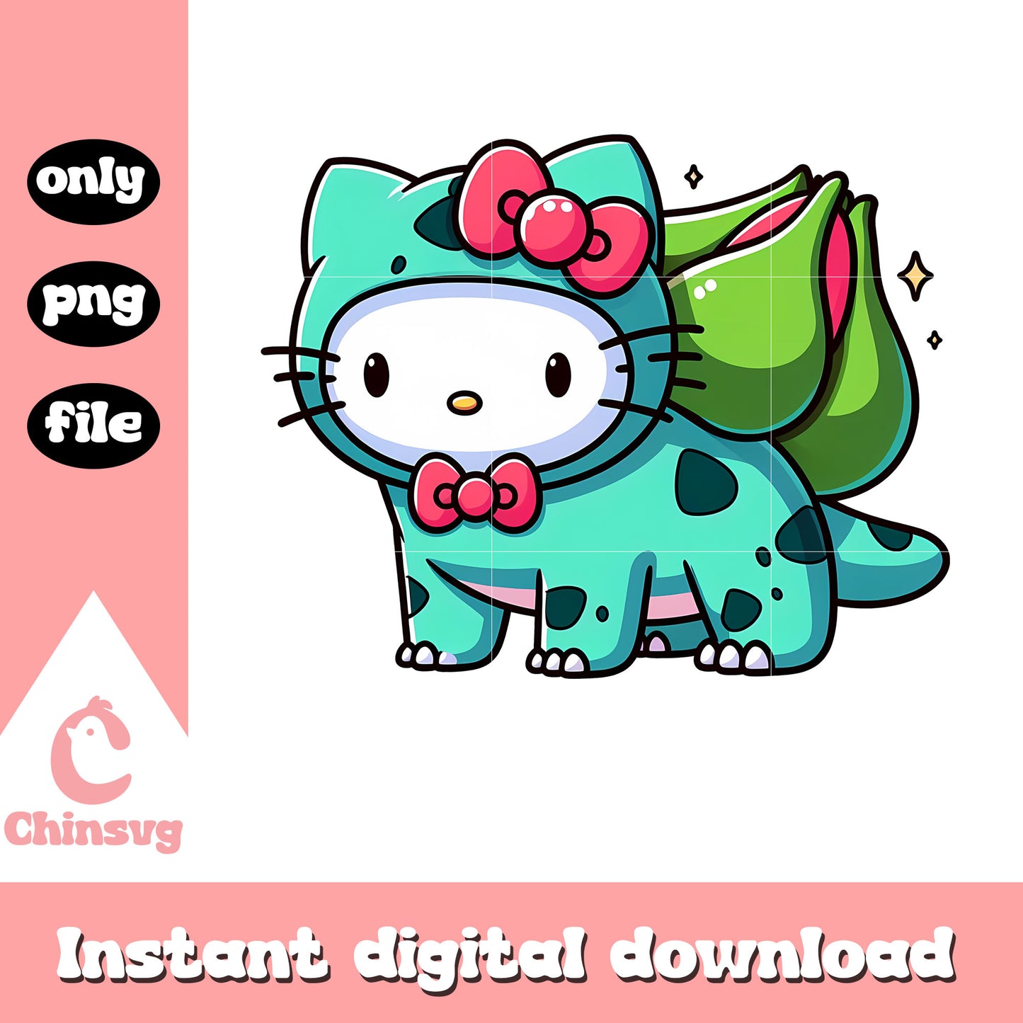 Sanrio hello kitty Bulbasaur png is a product of our hello kitty collection. Featuring the beloved character and her charming world, this collection is perfect for fans, crafters, and designers of all ages. Whether you're creating party decorations, custom gifts, or digital artwork, these high-quality designs will make every project extra cute and memorable.