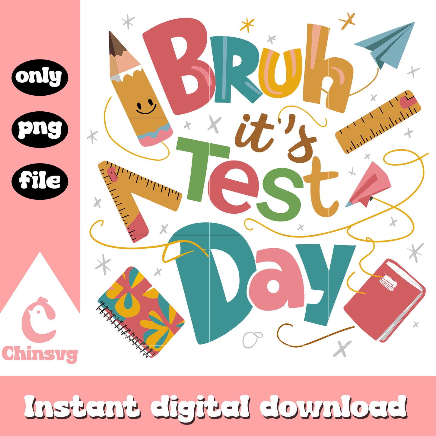 School supplies bruh it's test day png is a product of our Trending collection. Curated with all the latest styles, themes, and elements that are currently popular in the creative world. From modern icons to unique patterns and must-have graphics, this collection is perfect for designers, crafters, and DIY enthusiasts who want their projects to stay fresh and in style. Whether you’re working on digital designs, printables, or physical crafts, these high-quality files will elevate your work and keep you on-trend.