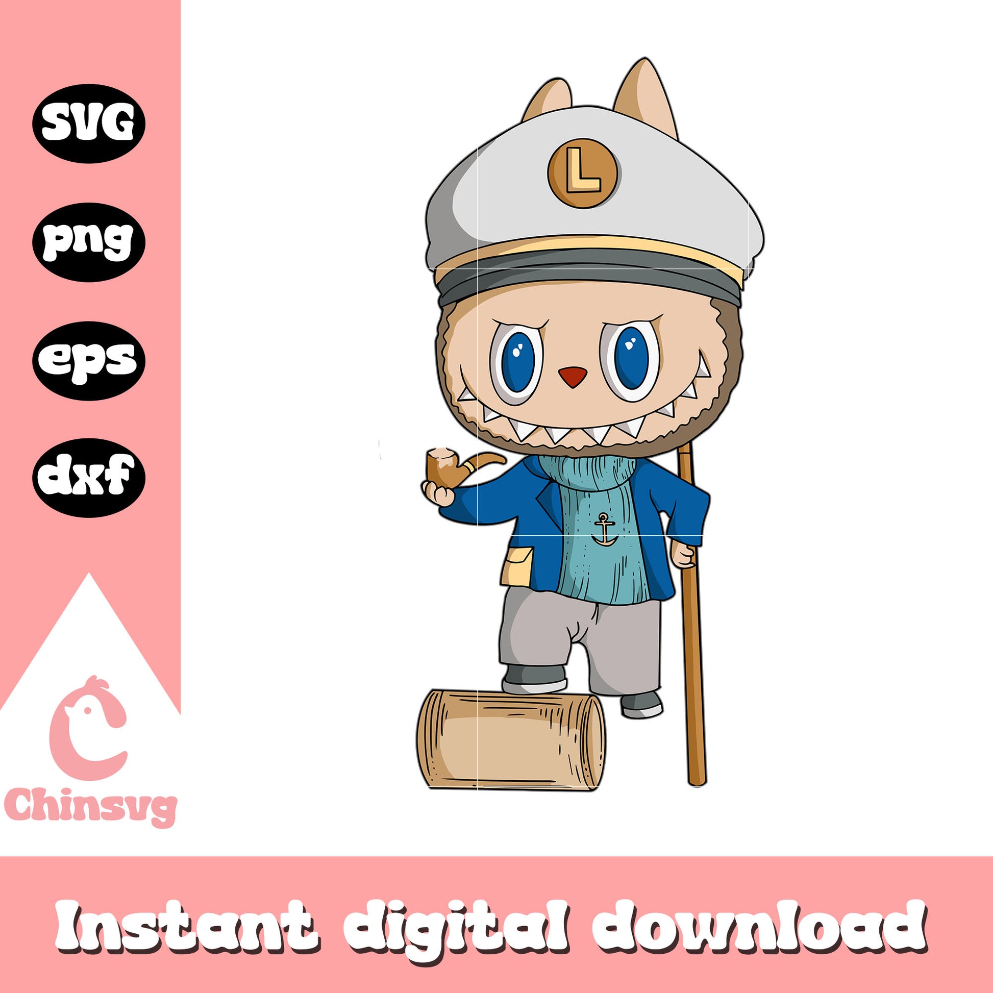 Sea captain labubu doll drawing design svg, labubu outfits svg
