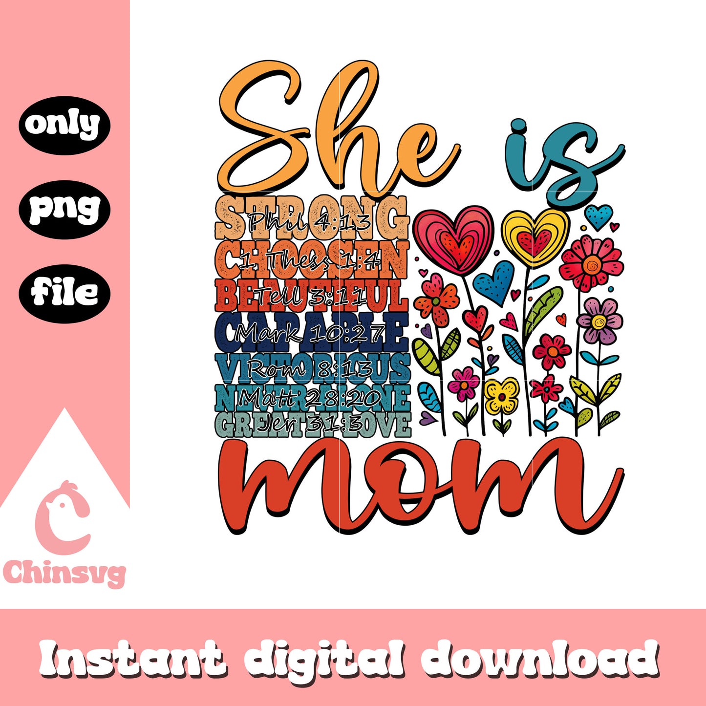 She is mom font design png is a product of our Mother's Day Svg collection. Featuring heartfelt quotes, floral designs, loving messages, and elegant typography, this collection is perfect for creating meaningful and personalized gifts. Whether you’re crafting t-shirts, mugs, greeting cards, or home decor, these high-quality designs will help make Mother’s Day extra special.