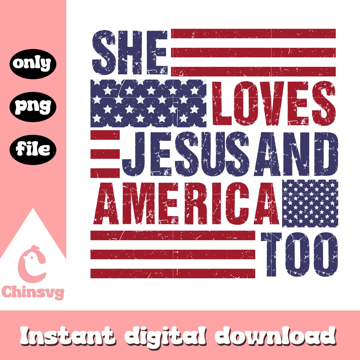 She loves jesus and america too png is a product of our 4th of July collection. Get ready to celebrate America’s Independence Day in style with our 4th of July SVG Collection! Packed with bold red, white, and blue designs, this collection features patriotic graphics, fun quotes, fireworks, flags, and more. Perfect for DIY apparel, party decorations, and personalized gifts that light up the holiday spirit!