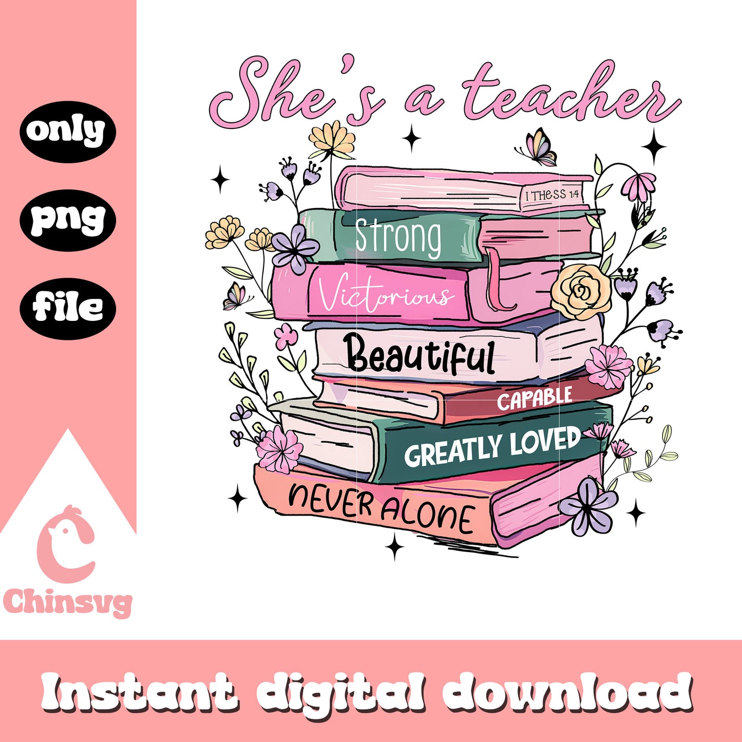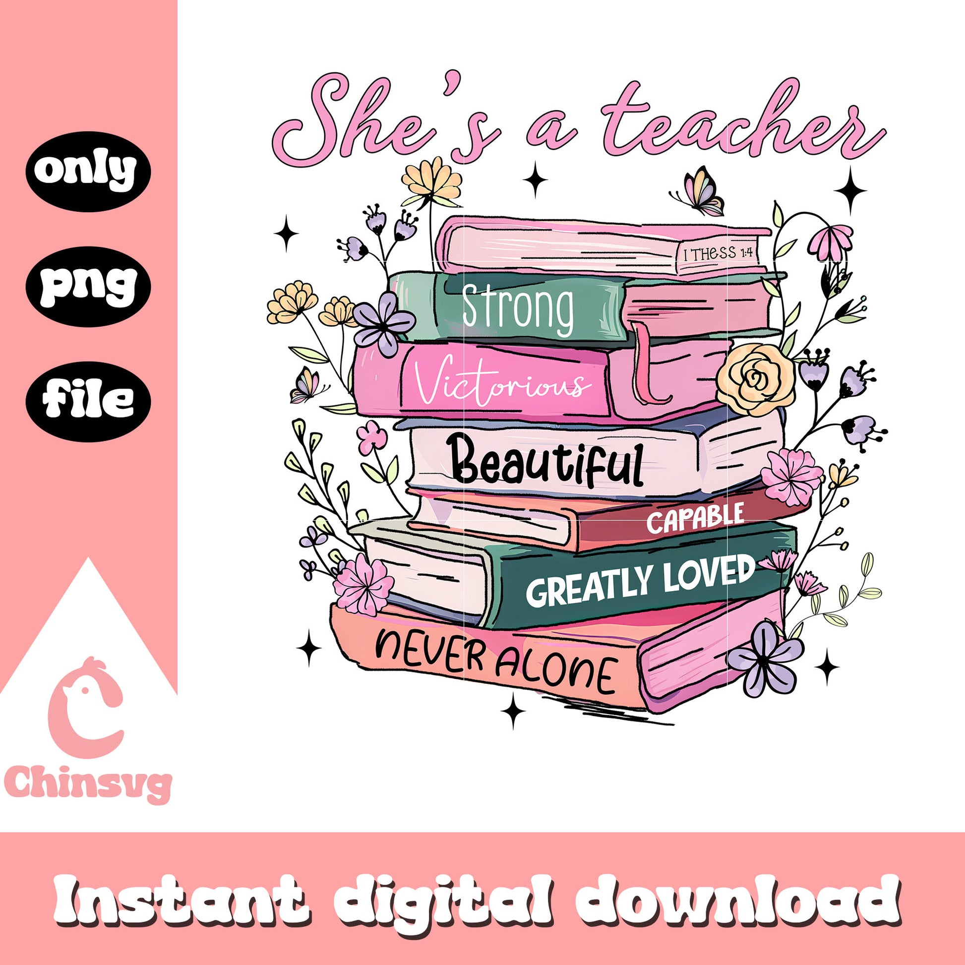She's a teacher books floral design png is a product of our School collection. Celebrate the spirit of learning with our School SVG Collection! Perfect for teachers, students, and parents, this collection features education-themed designs, from playful quotes and school supplies to classroom graphics and seasonal school moments. Whether you're personalizing a teacher gift or decorating for back-to-school, these high-quality files bring creativity to every classroom and craft project!