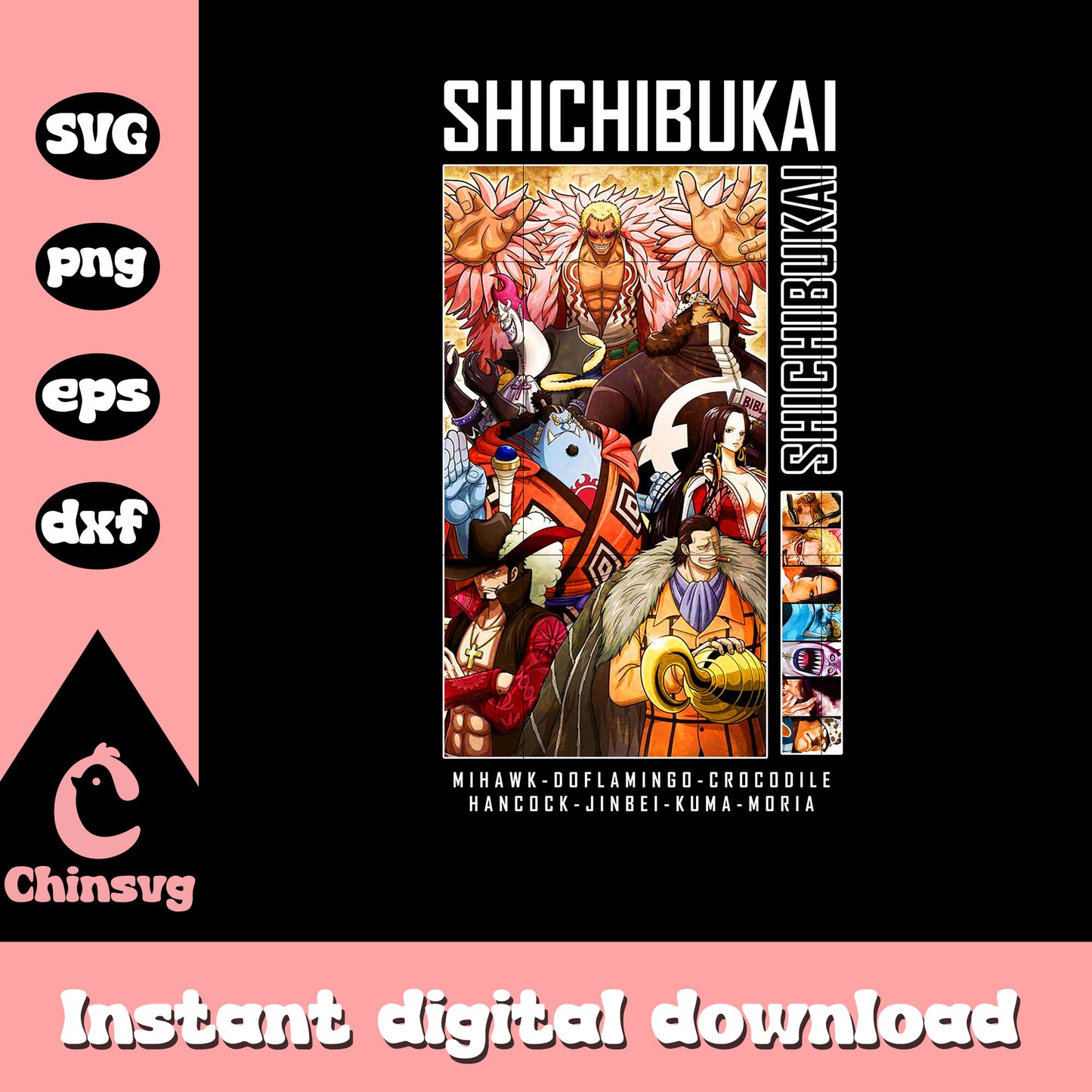 Shichibukai onepiece png is a product of our one piece collection. Featuring iconic characters, pirate symbols, legendary quotes, and famous emblems, this collection is perfect for anime fans, cosplayers, and creative crafters. Whether you're designing custom apparel, home decor, or gifts for fellow One Piece lovers, these high-quality SVG designs will bring the spirit of adventure to your creations!