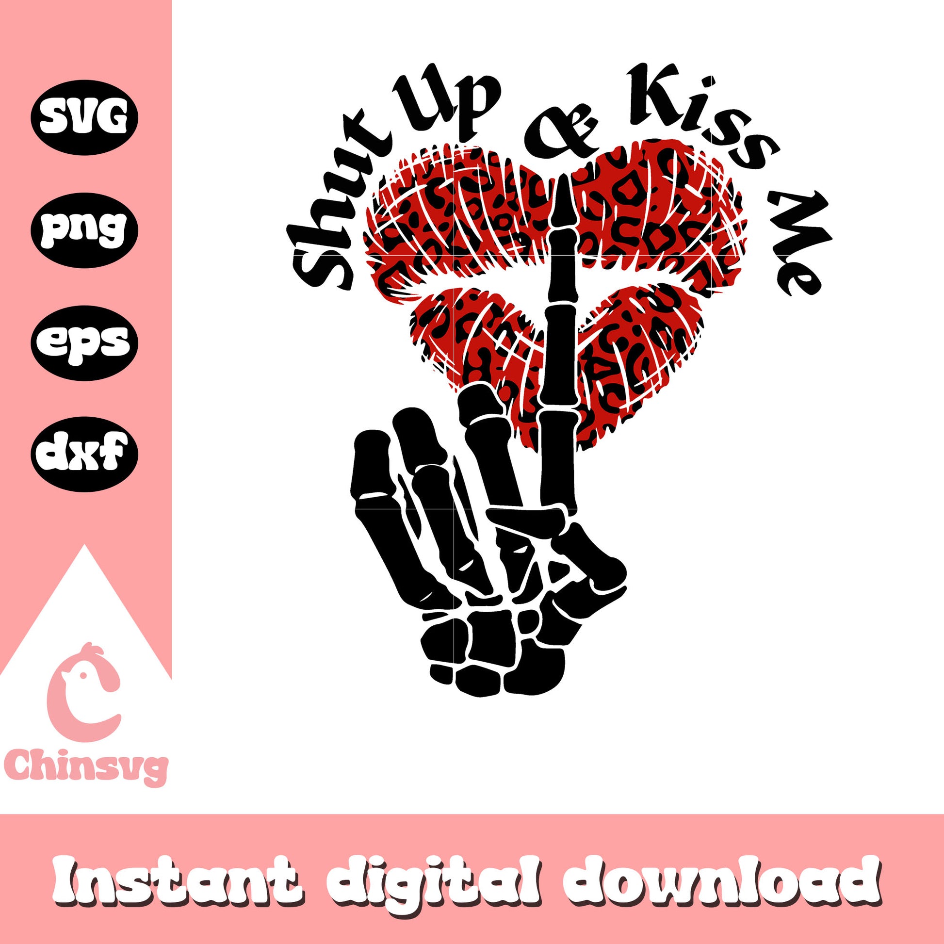 Shut up and kiss me svg, lips heart svg, finger skeleton svg