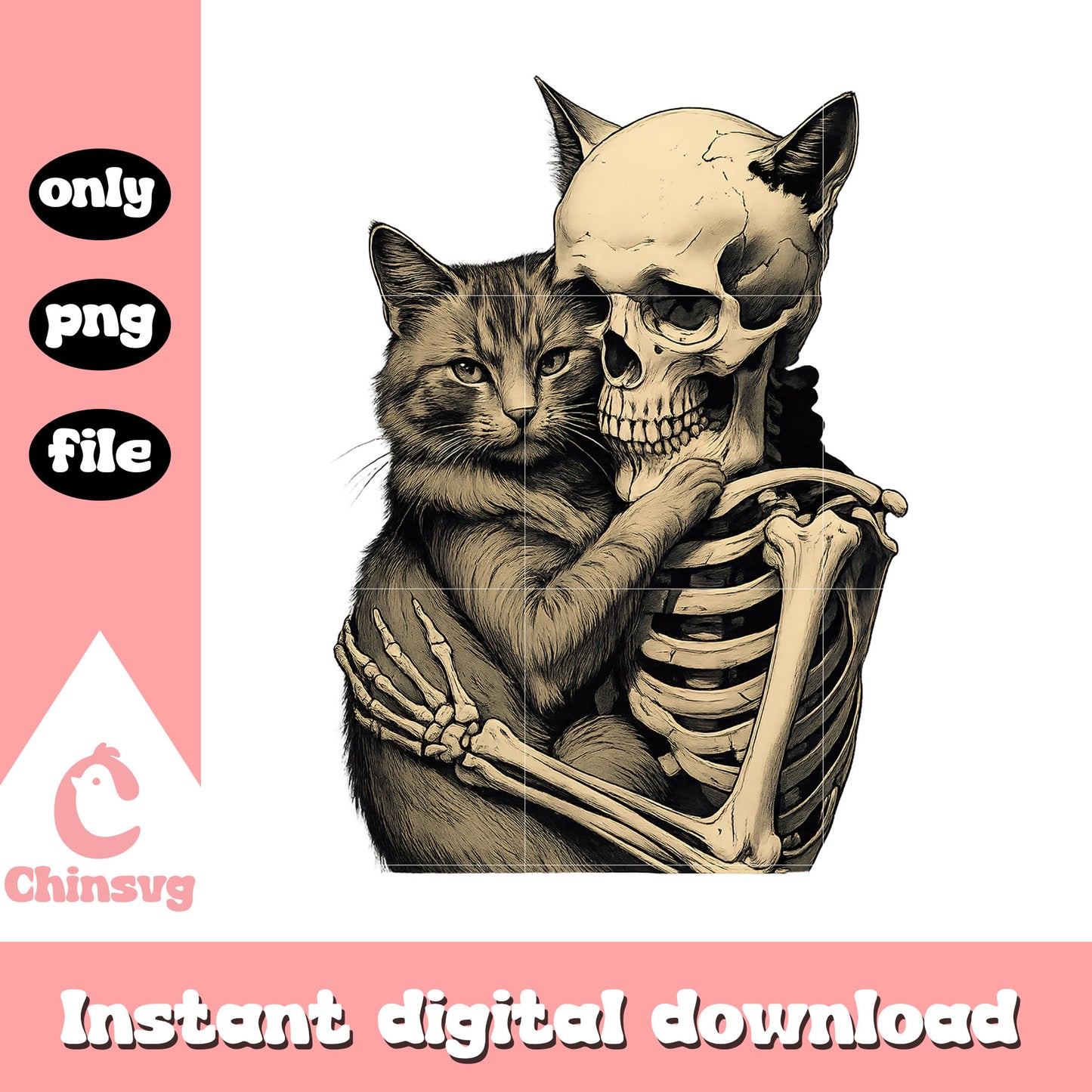 Skeleton hugging cat halloween design png, halloween skeleton png
