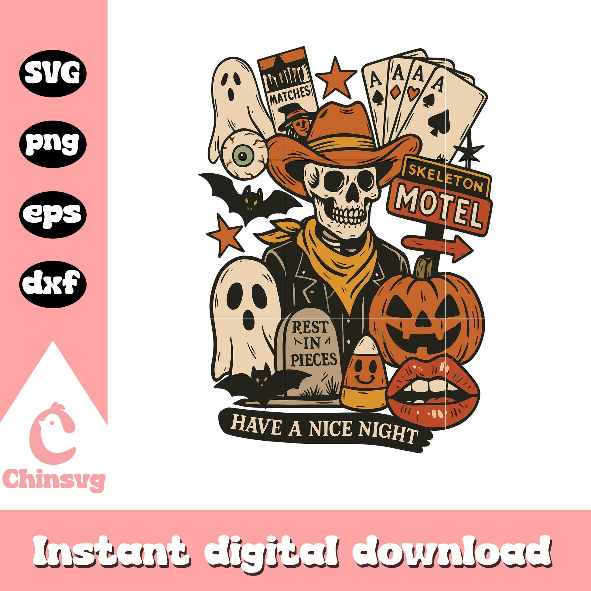 Skeleton motel have a nice night halloween design svg, clipart svg