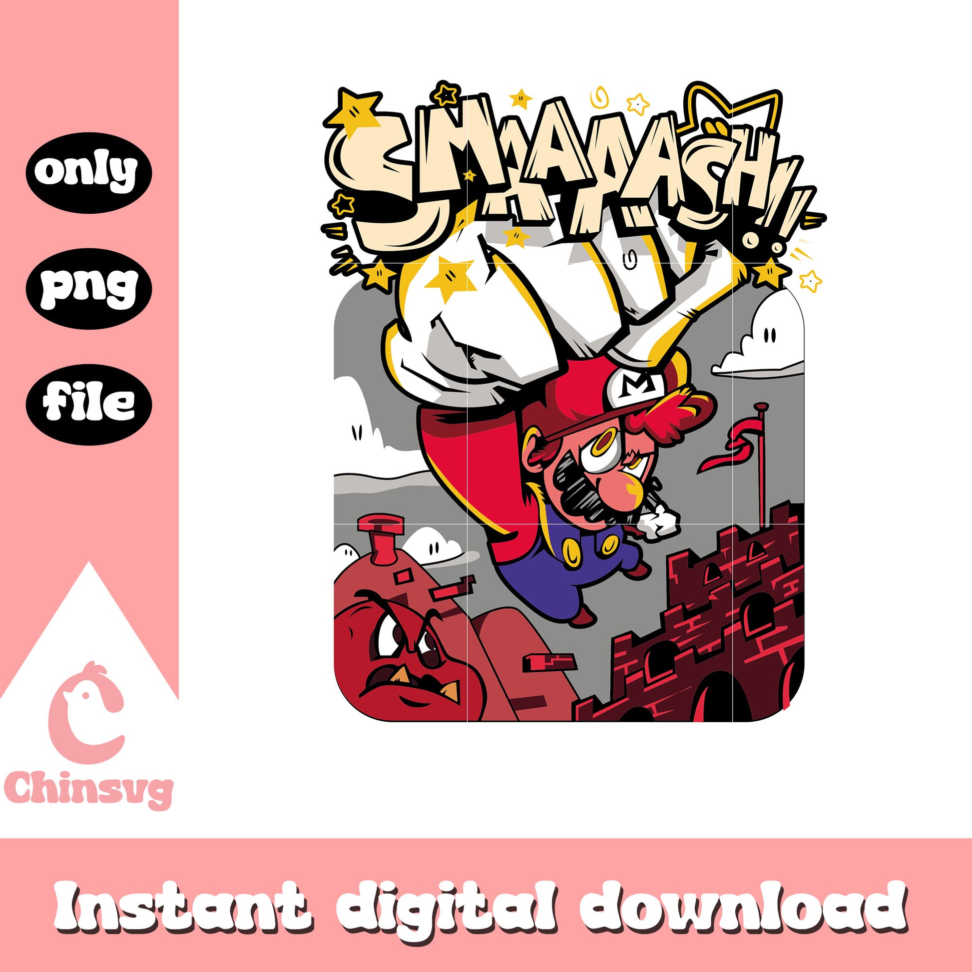 Smash super mario png is a product of our Mario collection. Featuring iconic characters, power-ups, fun quotes, and retro gaming elements, this collection is perfect for gamers, kids, and Nintendo fans. Whether you're creating custom apparel, party decorations, or DIY gifts, these high-quality SVG designs will bring a nostalgic and playful touch to your projects!