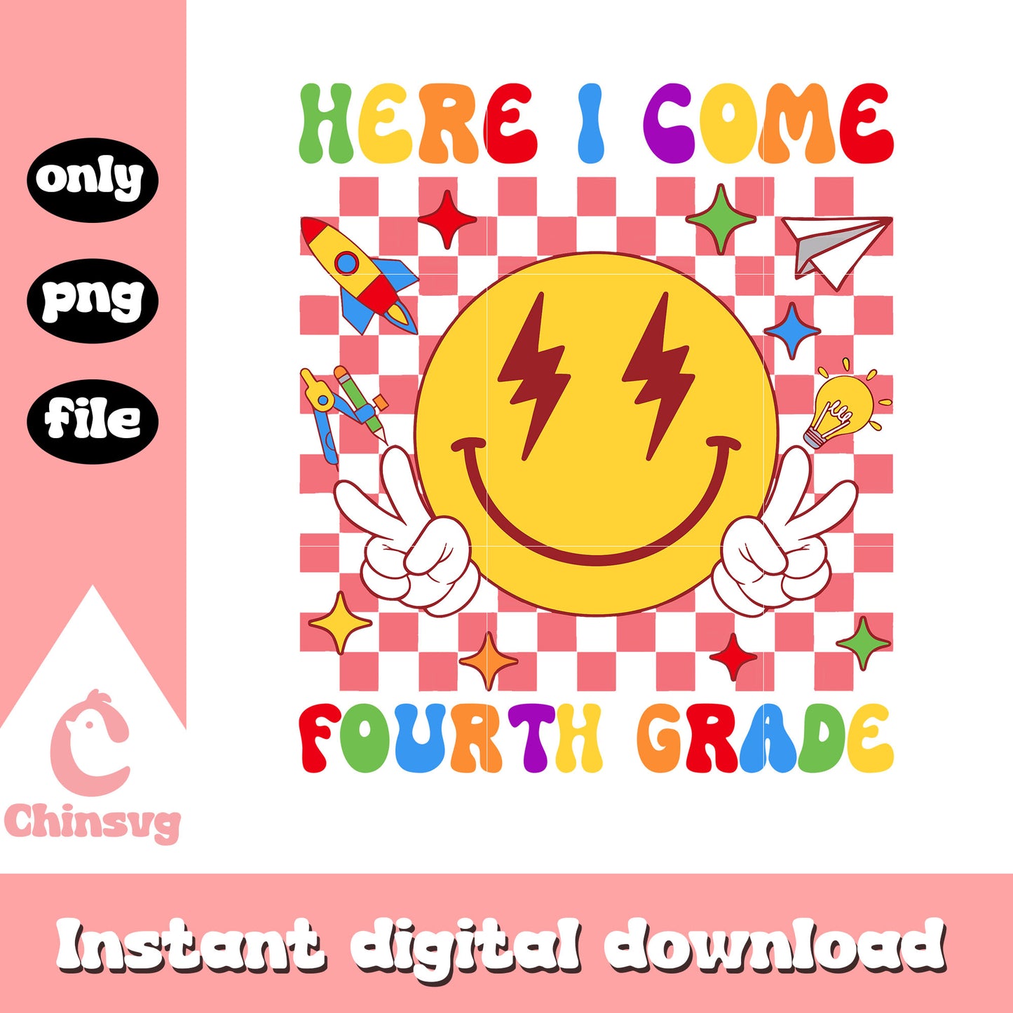 Smiley face here i come fourth grade png is a product of our School collection. Celebrate the spirit of learning with our School SVG Collection! Perfect for teachers, students, and parents, this collection features education-themed designs, from playful quotes and school supplies to classroom graphics and seasonal school moments. Whether you're personalizing a teacher gift or decorating for back-to-school, these high-quality files bring creativity to every classroom and craft project!