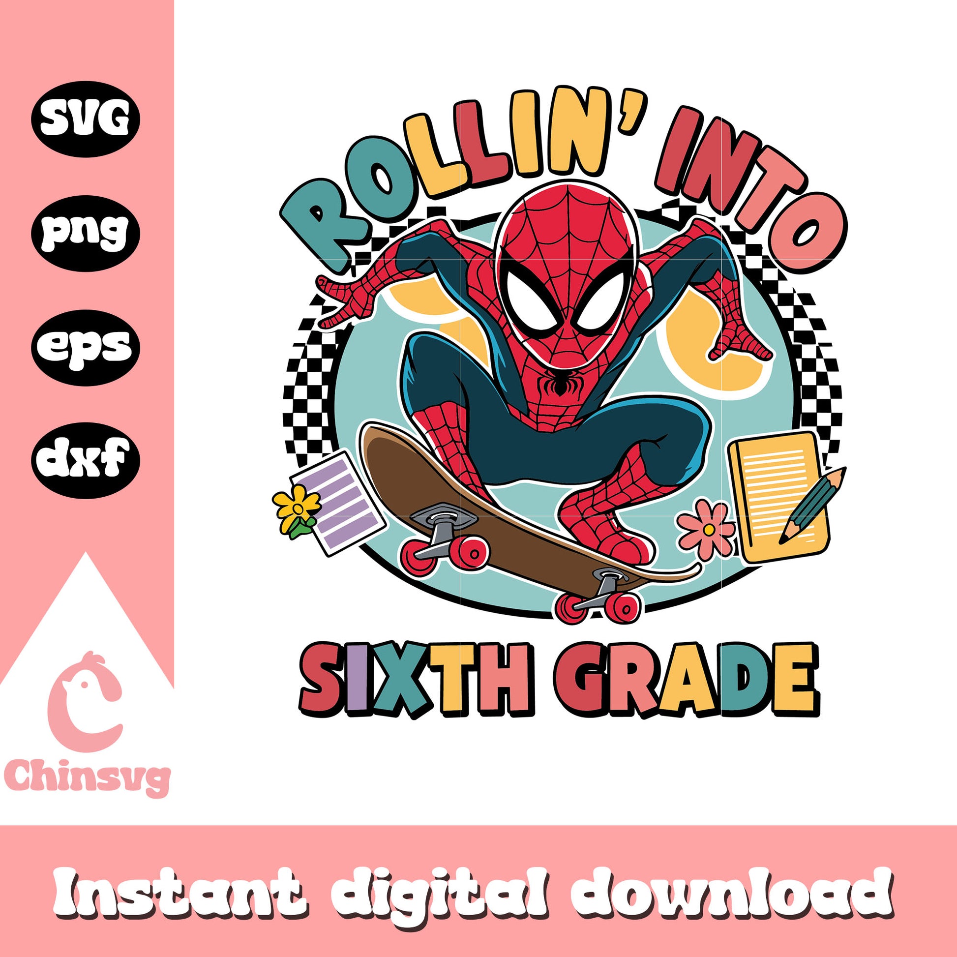 Spiderman rollin into sixth grade design svg, marvel spiderman svg