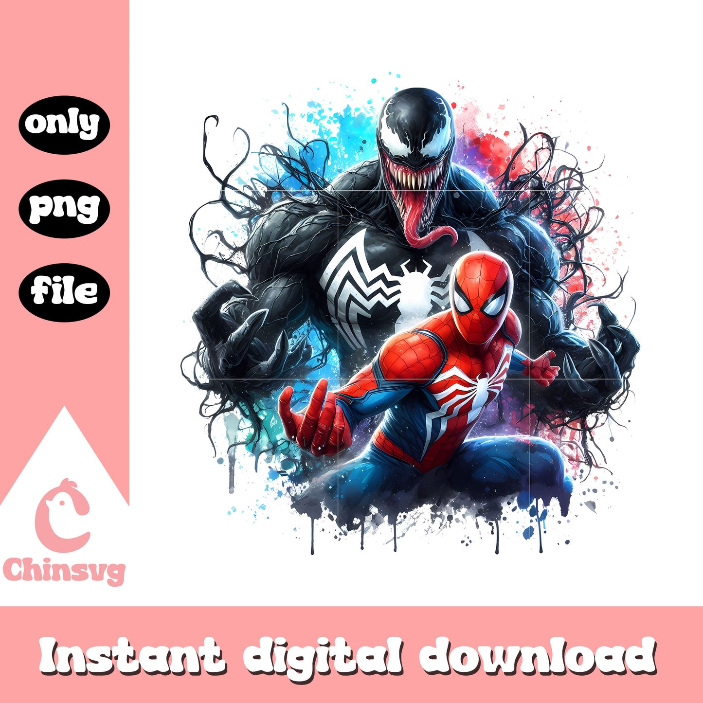 Spiderman venom splatter effect clipart png, venom and spiderman png