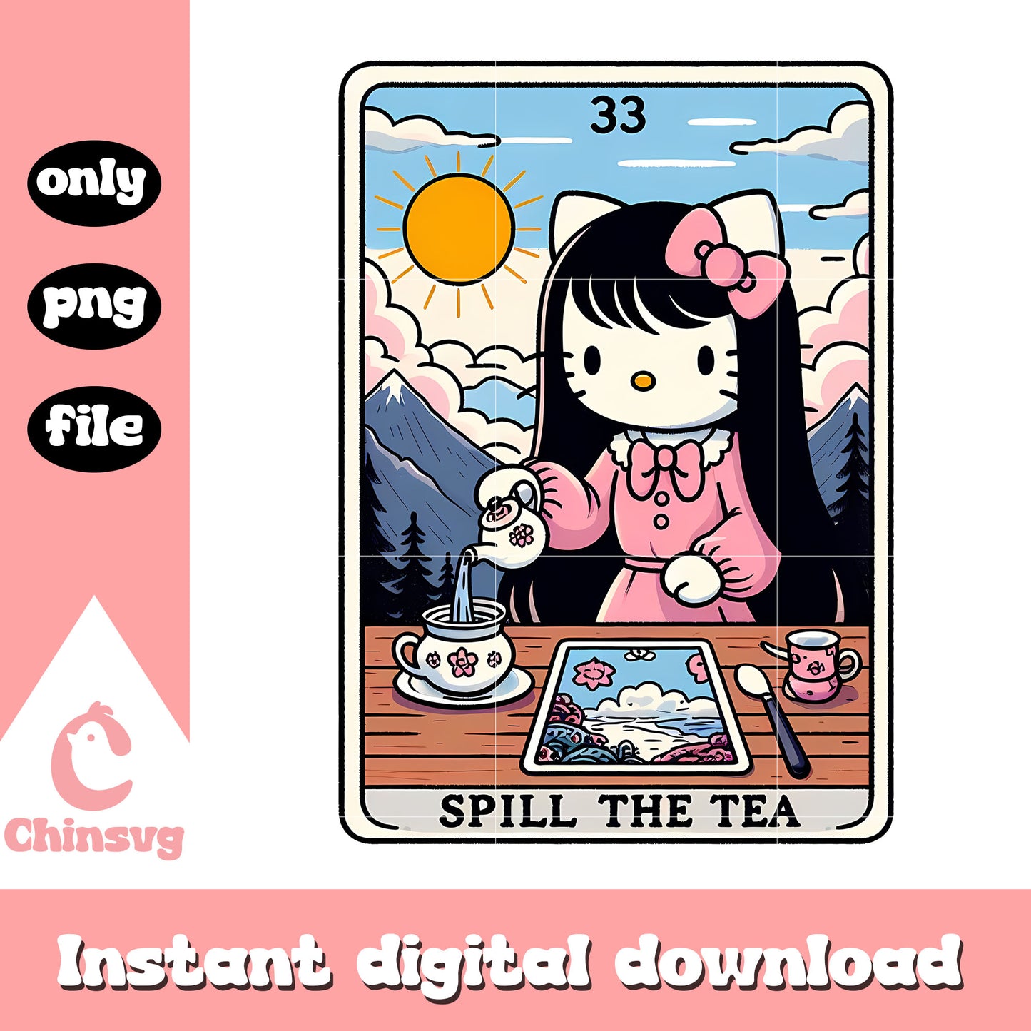 Spill the tea tarot card png, hello kitty png, tarot cards png