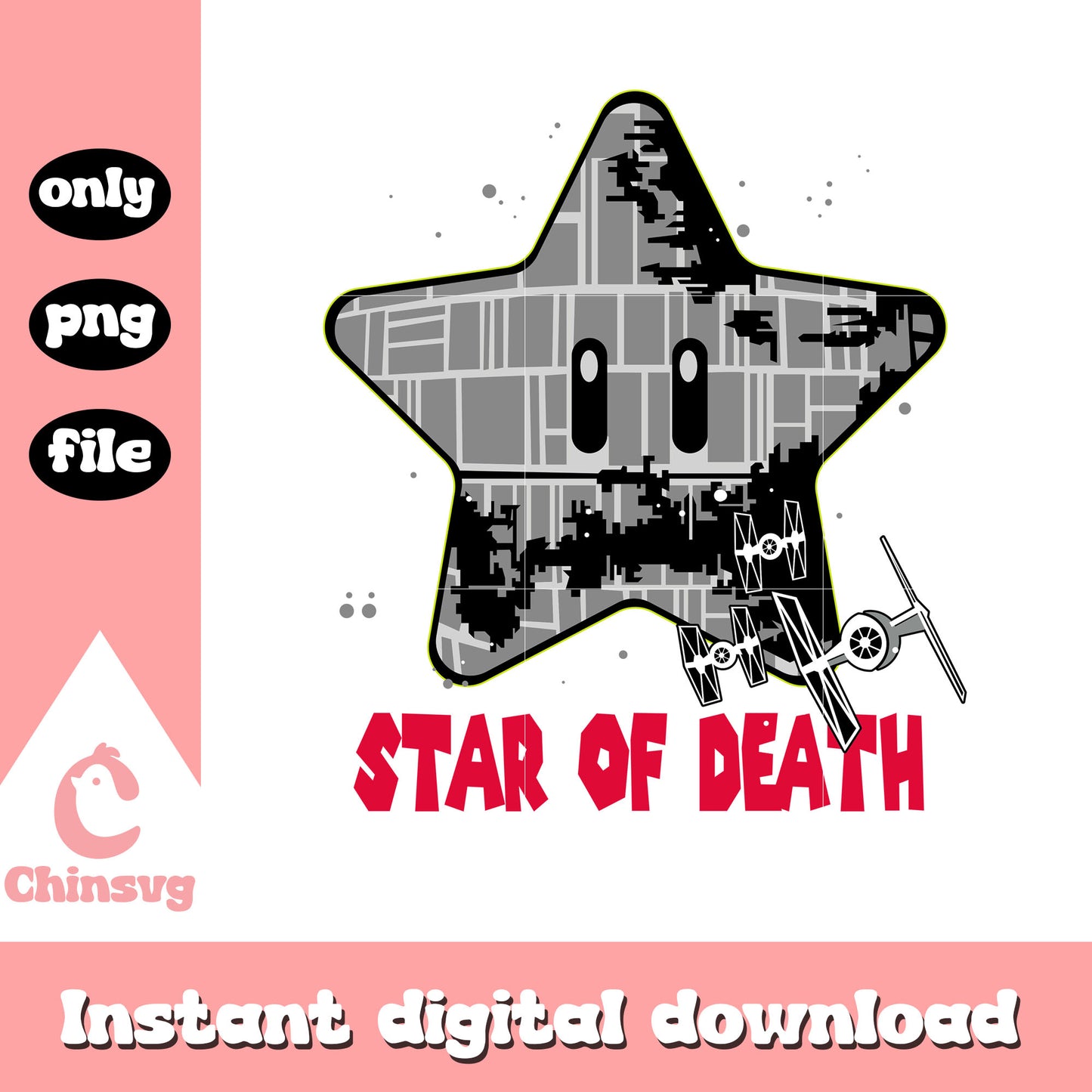 Star of death png is a product of our Mario collection. Featuring iconic characters, power-ups, fun quotes, and retro gaming elements, this collection is perfect for gamers, kids, and Nintendo fans. Whether you're creating custom apparel, party decorations, or DIY gifts, these high-quality SVG designs will bring a nostalgic and playful touch to your projects!