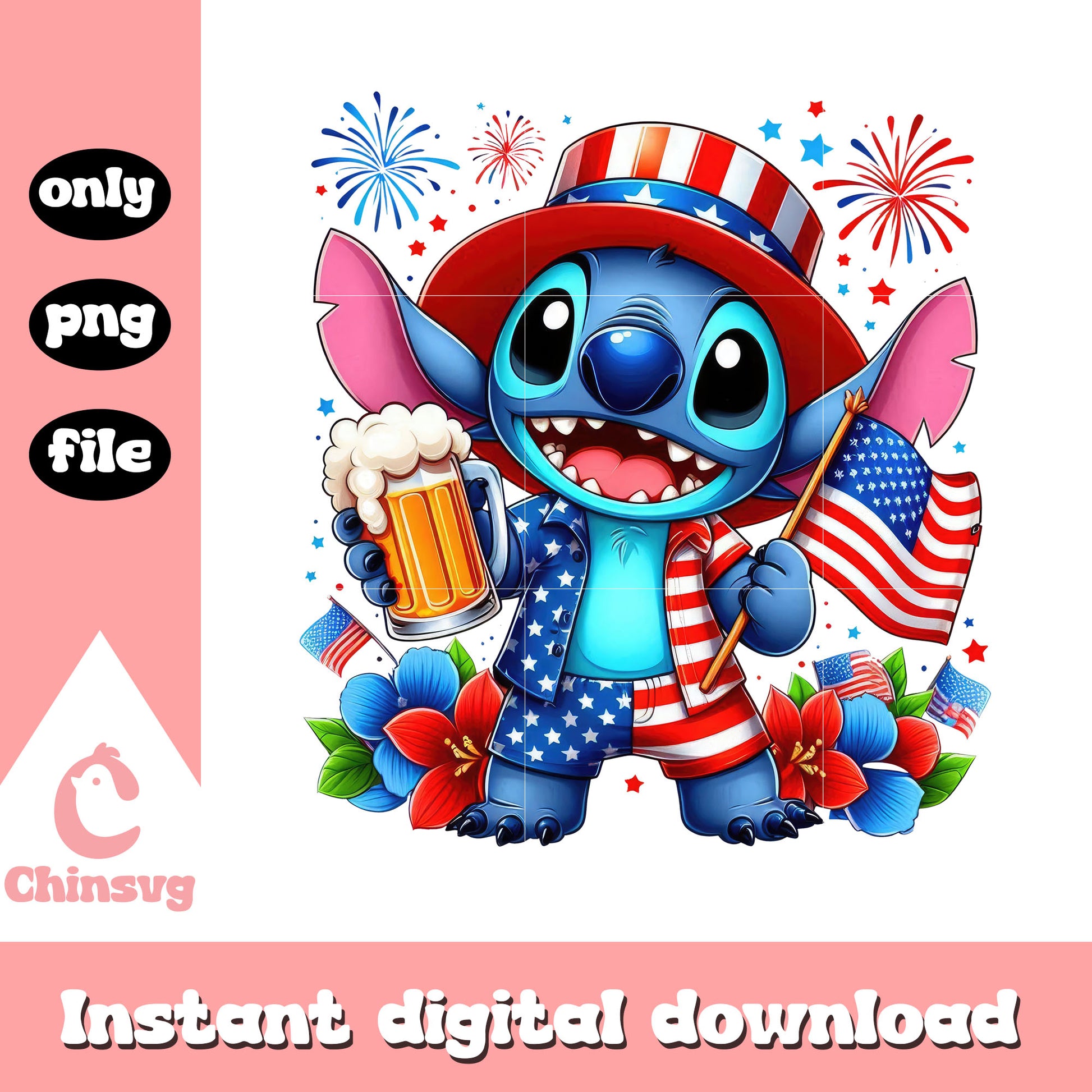 Stitch beer independence day png is a product of our 4th of July collection. Get ready to celebrate America’s Independence Day in style with our 4th of July SVG Collection! Packed with bold red, white, and blue designs, this collection features patriotic graphics, fun quotes, fireworks, flags, and more. Perfect for DIY apparel, party decorations, and personalized gifts that light up the holiday spirit!