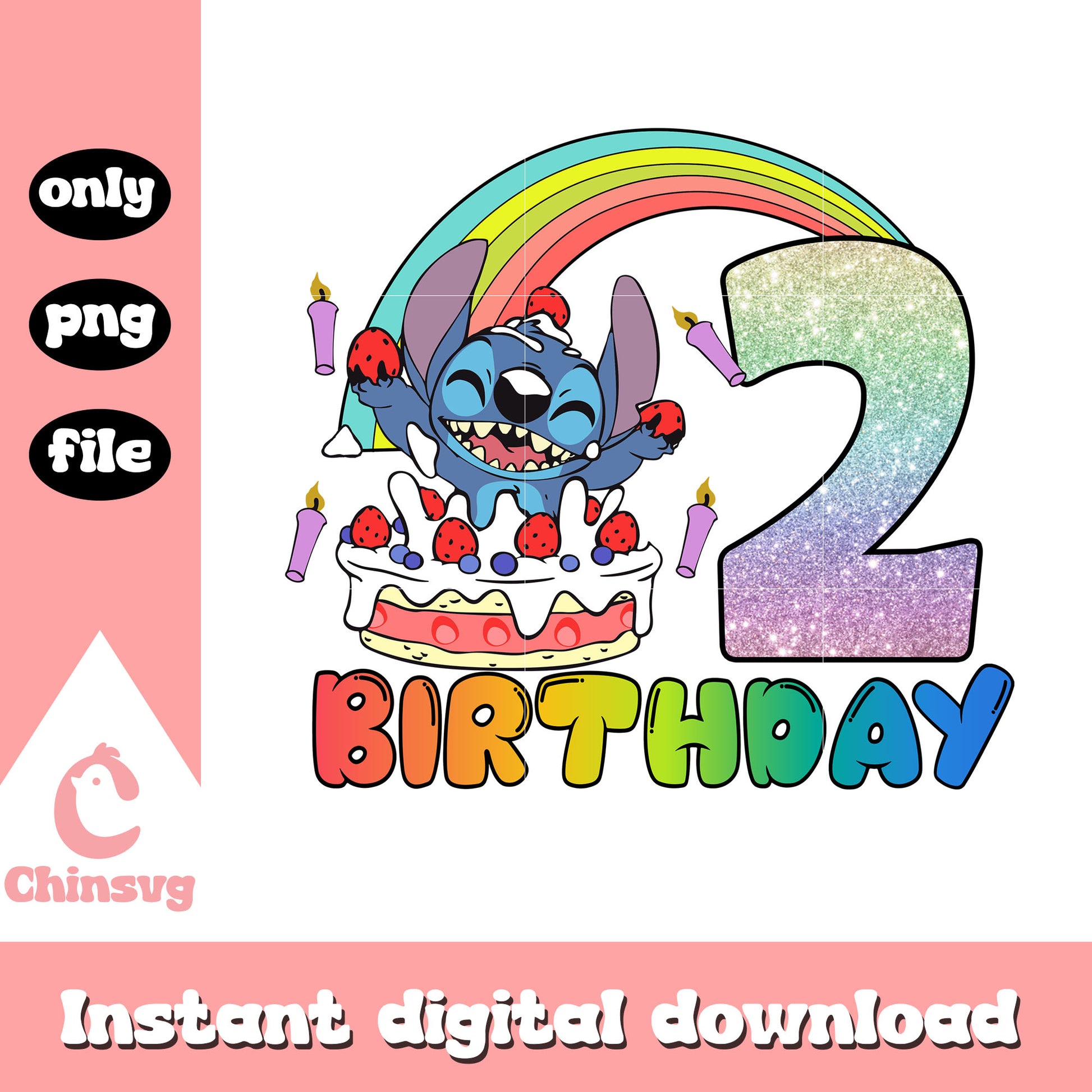 Stitch birthday two png is a product of our Disney collection. Perfect for Disney fans of all ages, this collection captures the charm and nostalgia of your favorite characters and magical worlds. Featuring a range of beloved characters, castles, magical icons, and whimsical designs, these files are ideal for creating everything from custom apparel to party decorations and personalized gifts.