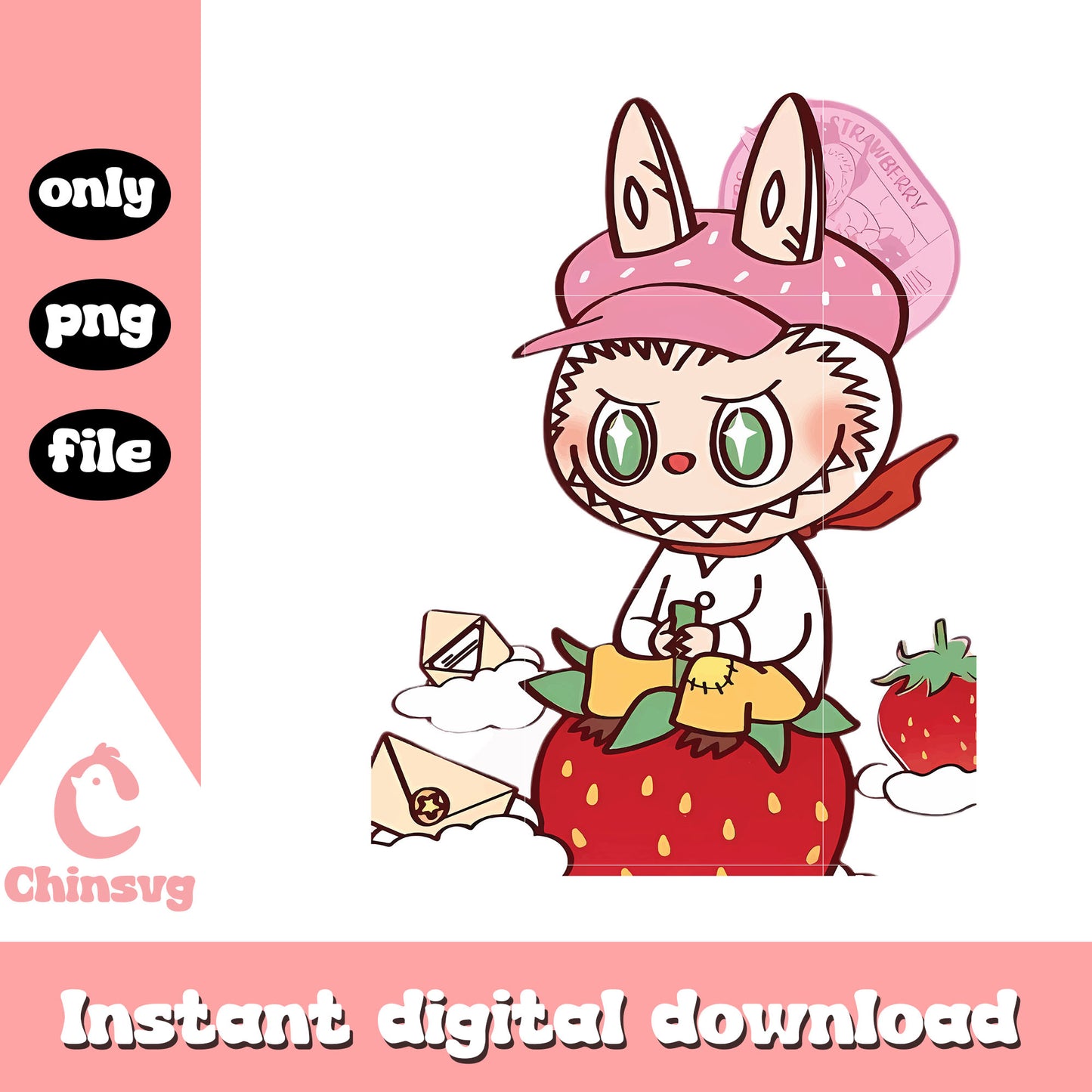Strawberry postman labubu cute doll design png, labubu clipart png