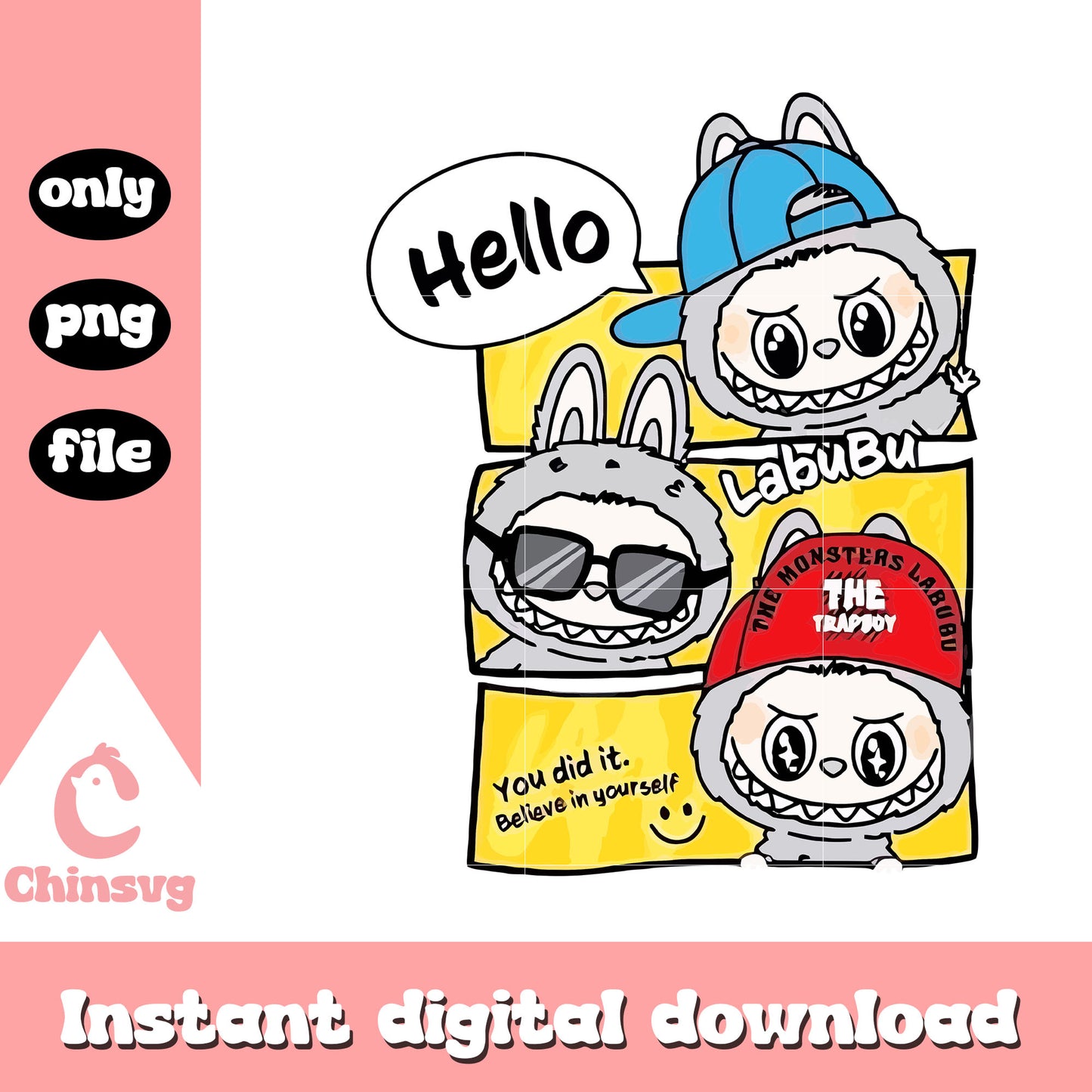 Streetwise style labubu cute doll design png is a product of our Labubu collection. Dive into the magical world of Labubu with our whimsical Labubu SVG Collection! Inspired by the beloved mischievous character from the POP MART universe, this collection is filled with playful poses, expressive faces, and cute yet edgy vibes. Perfect for fans, collectors, and crafters looking to add a touch of artistic charm and character to their projects.