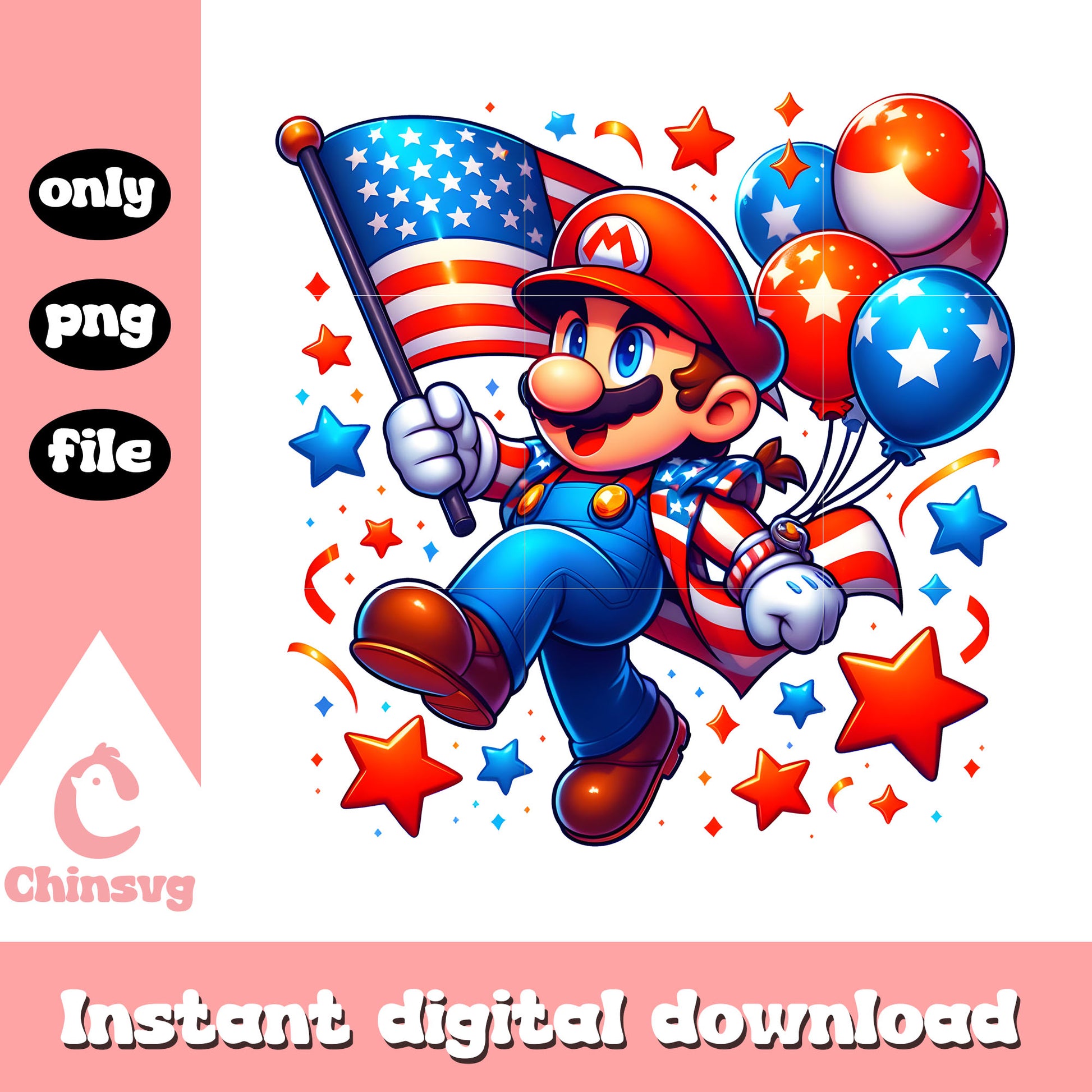 Super mario freedom day flag png is a product of our 4th of July collection. Get ready to celebrate America’s Independence Day in style with our 4th of July SVG Collection! Packed with bold red, white, and blue designs, this collection features patriotic graphics, fun quotes, fireworks, flags, and more. Perfect for DIY apparel, party decorations, and personalized gifts that light up the holiday spirit!