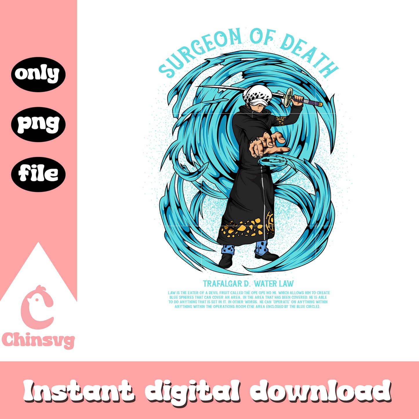 Surgeon of death png is a product of our one piece collection. Featuring iconic characters, pirate symbols, legendary quotes, and famous emblems, this collection is perfect for anime fans, cosplayers, and creative crafters. Whether you're designing custom apparel, home decor, or gifts for fellow One Piece lovers, these high-quality SVG designs will bring the spirit of adventure to your creations!