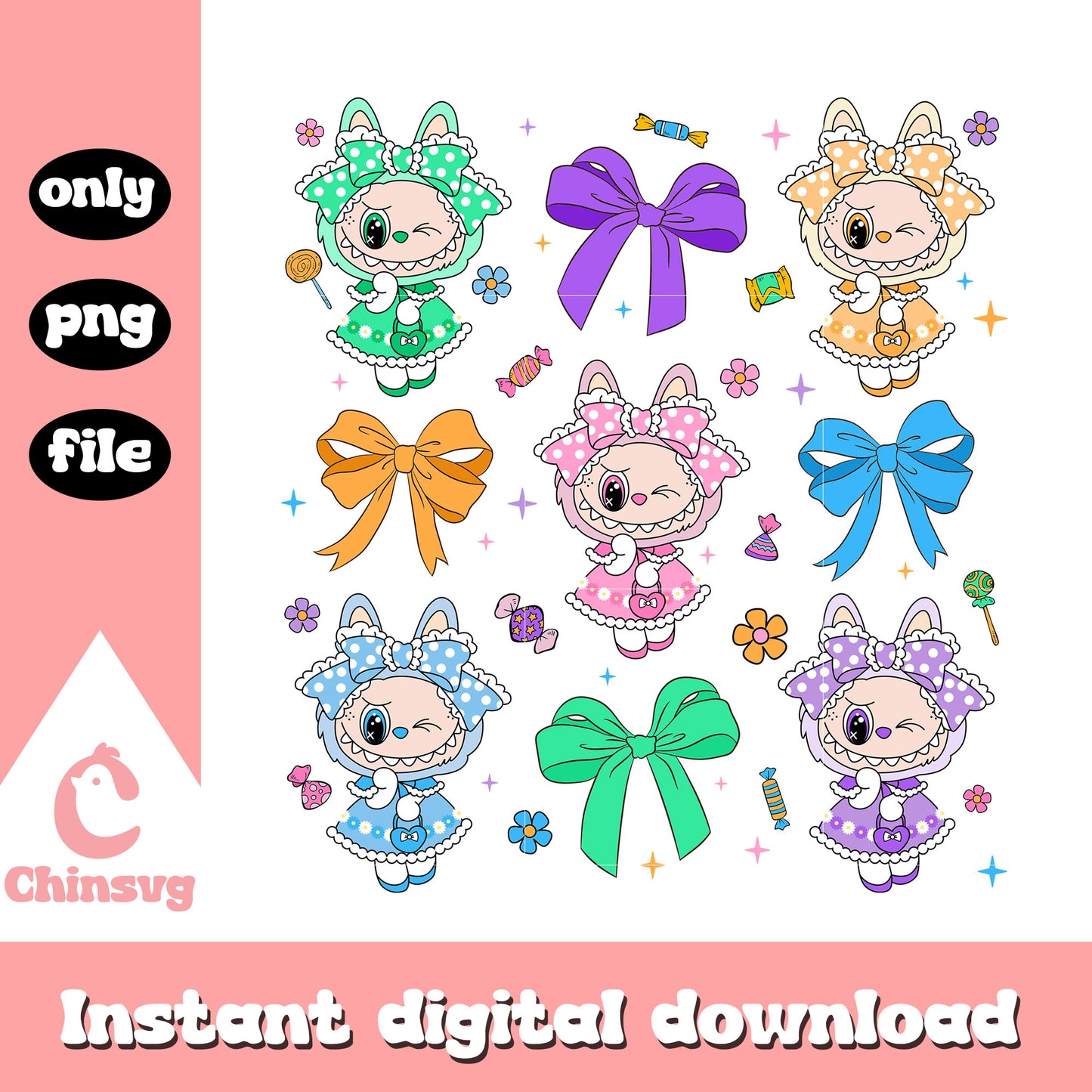 Sweet bow labubu series design png is a product of our Labubu collection. Dive into the magical world of Labubu with our whimsical Labubu SVG Collection! Inspired by the beloved mischievous character from the POP MART universe, this collection is filled with playful poses, expressive faces, and cute yet edgy vibes. Perfect for fans, collectors, and crafters looking to add a touch of artistic charm and character to their projects.