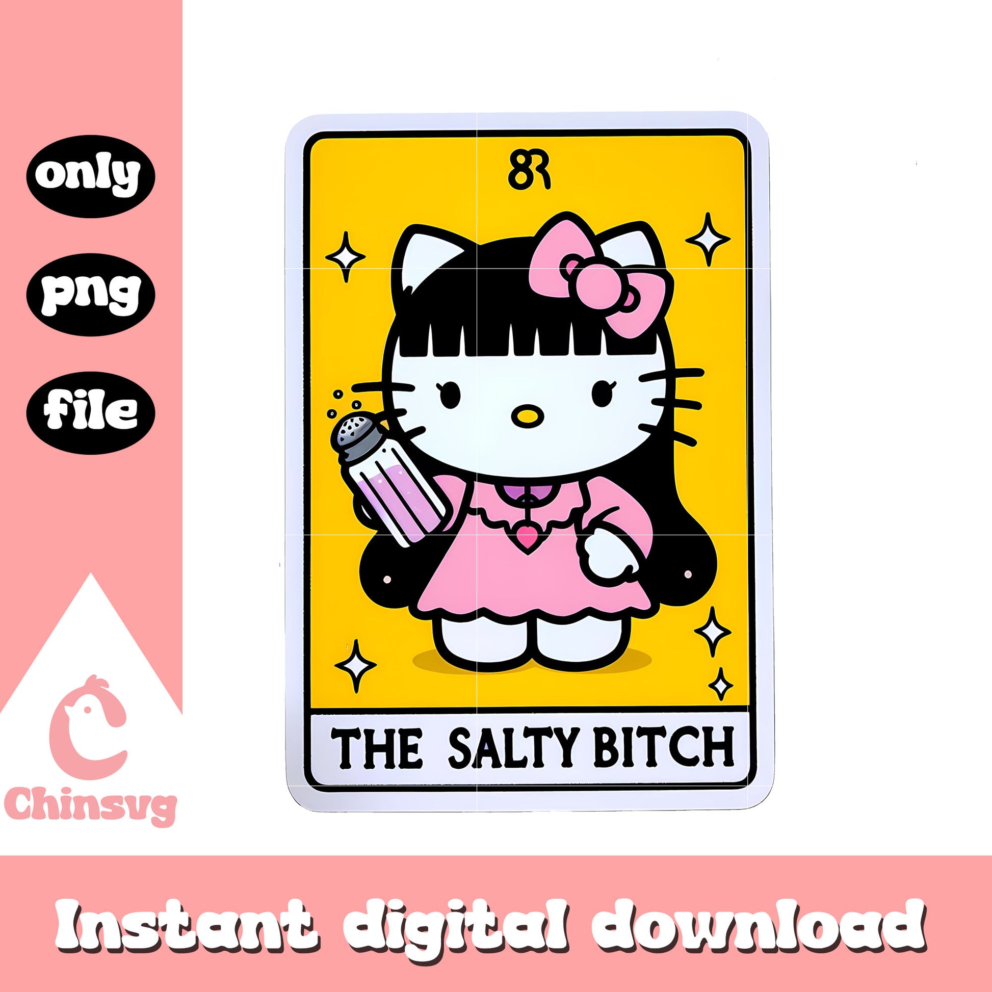 Tarot cards the salty bitch png is a product of our hello kitty collection. Featuring the beloved character and her charming world, this collection is perfect for fans, crafters, and designers of all ages. Whether you're creating party decorations, custom gifts, or digital artwork, these high-quality designs will make every project extra cute and memorable.
