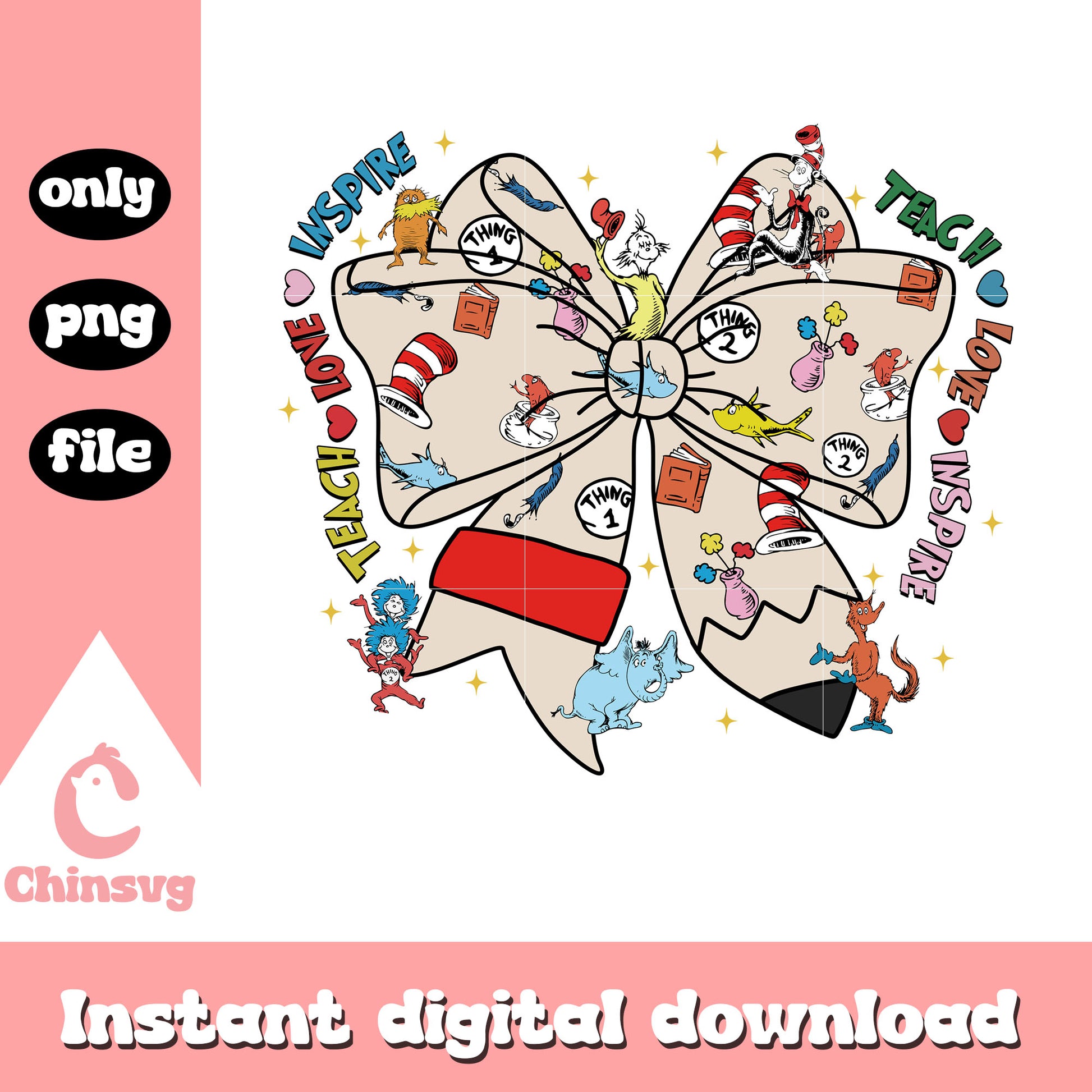 Teach love inspire png, dr seuss bow png, dr seuss cartoon png