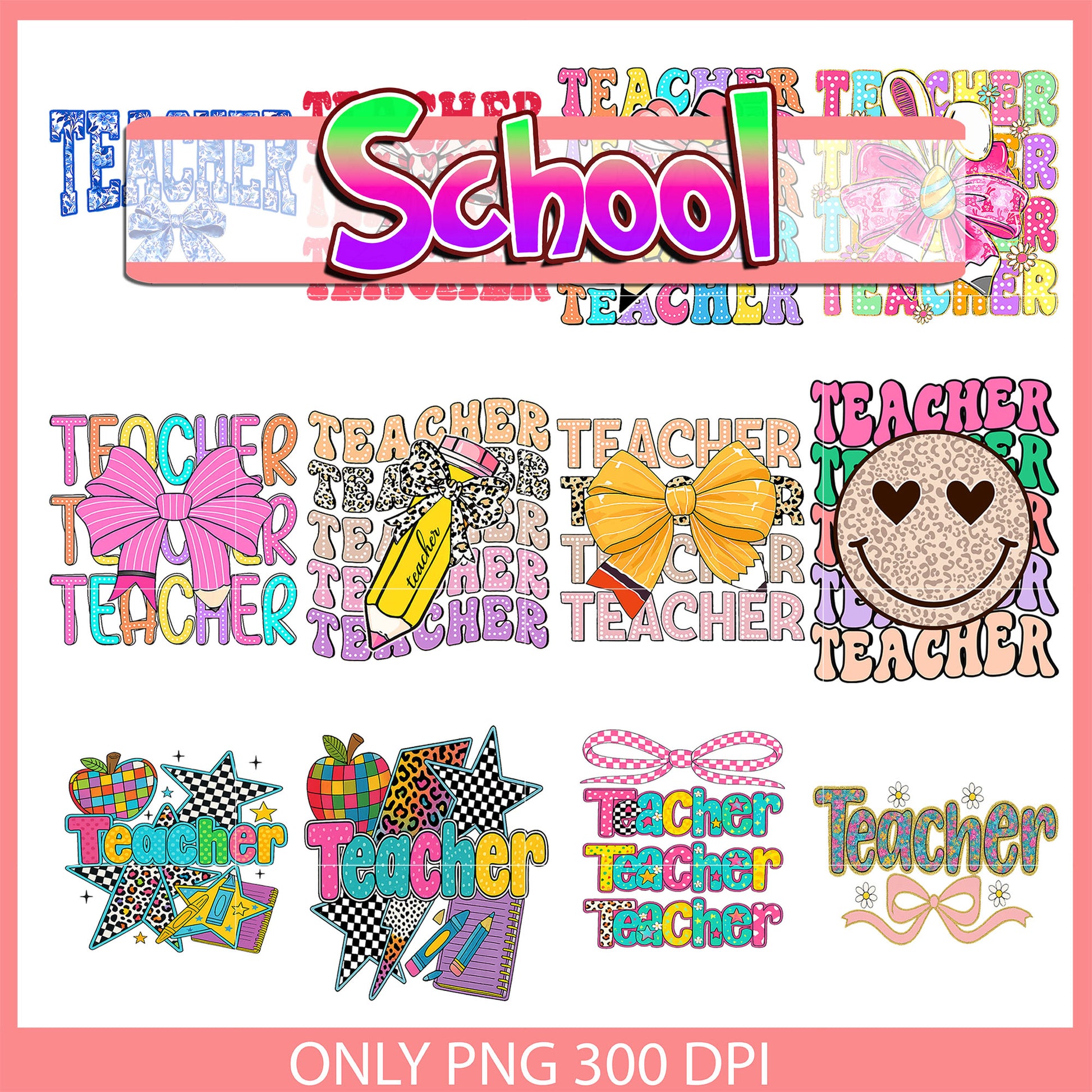 Teacher coquette logo bundle png is a product of our School collection. Celebrate the spirit of learning with our School SVG Collection! Perfect for teachers, students, and parents, this collection features education-themed designs, from playful quotes and school supplies to classroom graphics and seasonal school moments. Whether you're personalizing a teacher gift or decorating for back-to-school, these high-quality files bring creativity to every classroom and craft project!