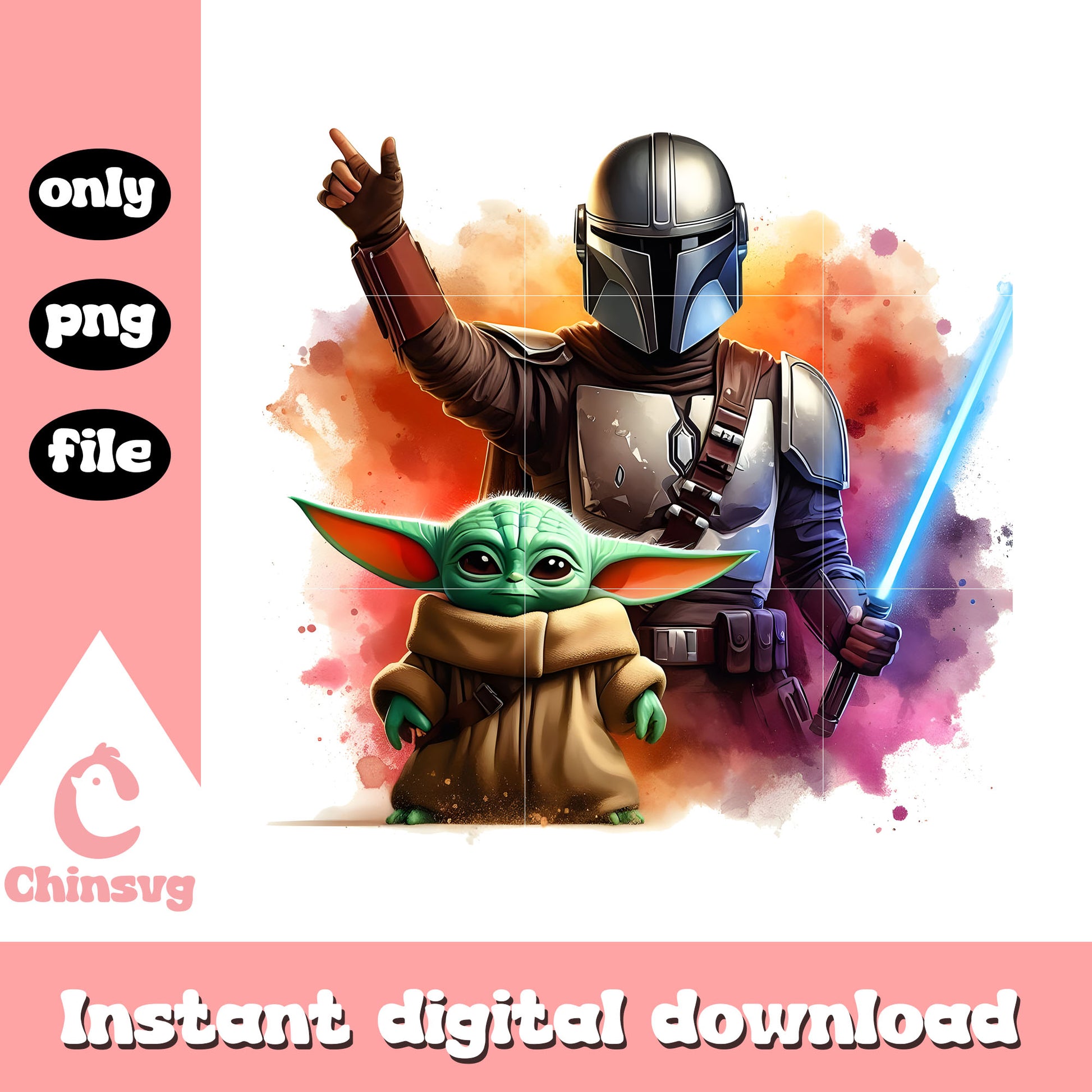 The mandalorian and yoda watercolor png, the mandalorian and grugo png