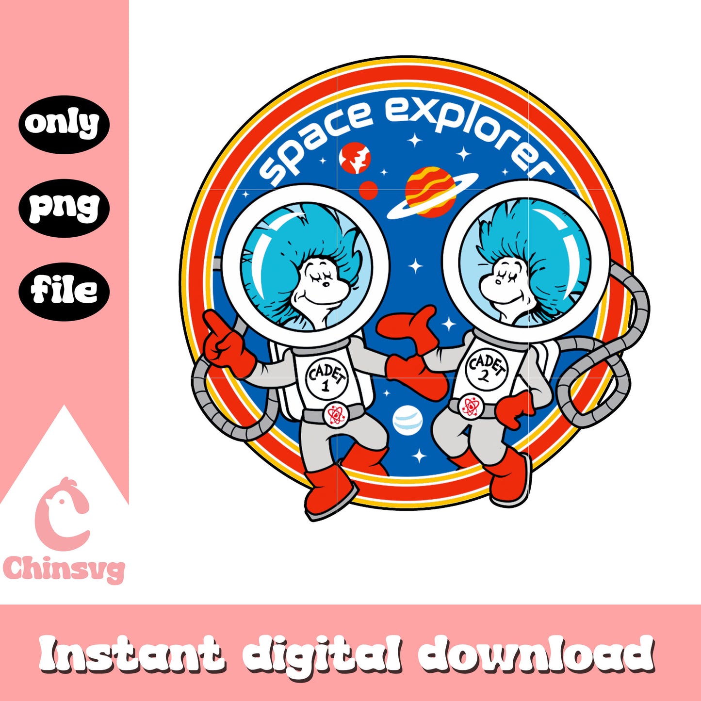 Thing one thing two space explorer png is a product of our Dr seuss collection. inspired by the beloved books and characters that have enchanted generations! Featuring iconic designs of The Cat in the Hat, Horton, Thing 1 & Thing 2, and more, along with memorable quotes and whimsical elements, this collection is perfect for crafting unique projects that spark joy and creativity.