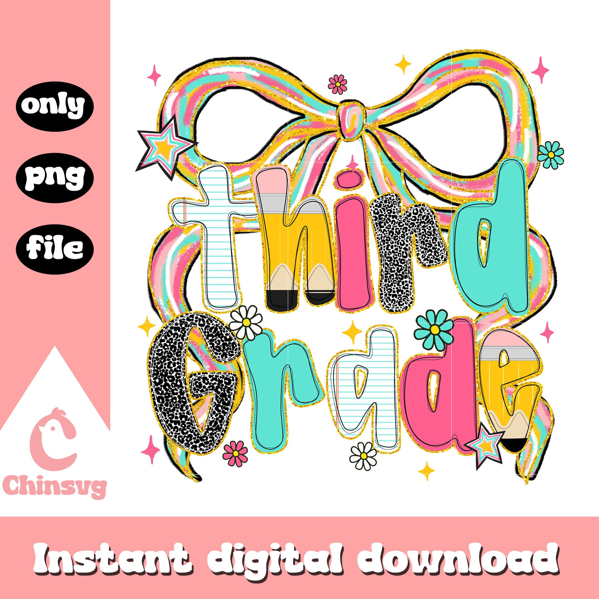 Third grade on school png is a product of our School collection. Celebrate the spirit of learning with our School SVG Collection! Perfect for teachers, students, and parents, this collection features education-themed designs, from playful quotes and school supplies to classroom graphics and seasonal school moments. Whether you're personalizing a teacher gift or decorating for back-to-school, these high-quality files bring creativity to every classroom and craft project!