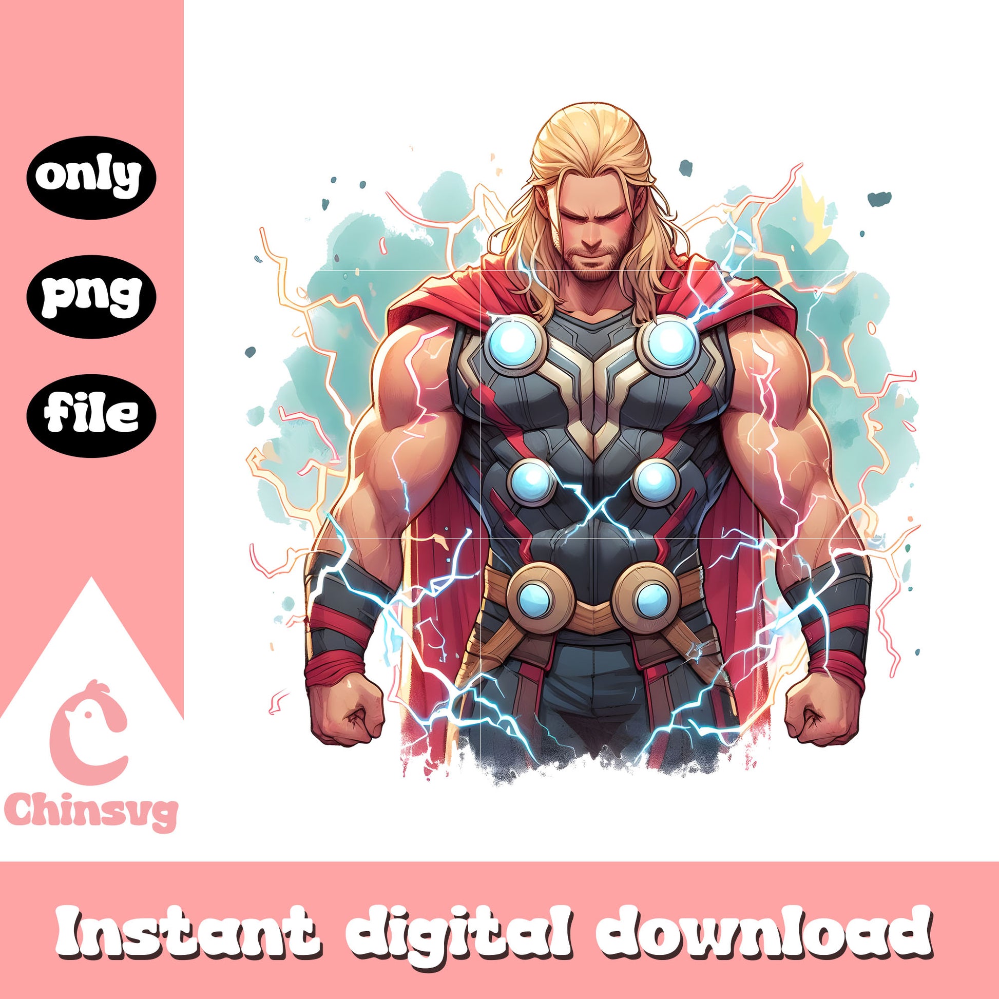 Thor thunder posing splatter effect png is a product of our Avengers collection. Featuring your favorite Marvel superheroes like Iron Man, Captain America, Thor, Hulk, Black Widow, and more, this collection is perfect for fans, party planners, and creators who want to add heroic flair to their designs. Whether you're crafting for kids or grown-up Marvel lovers, this set brings action and excitement to every project.